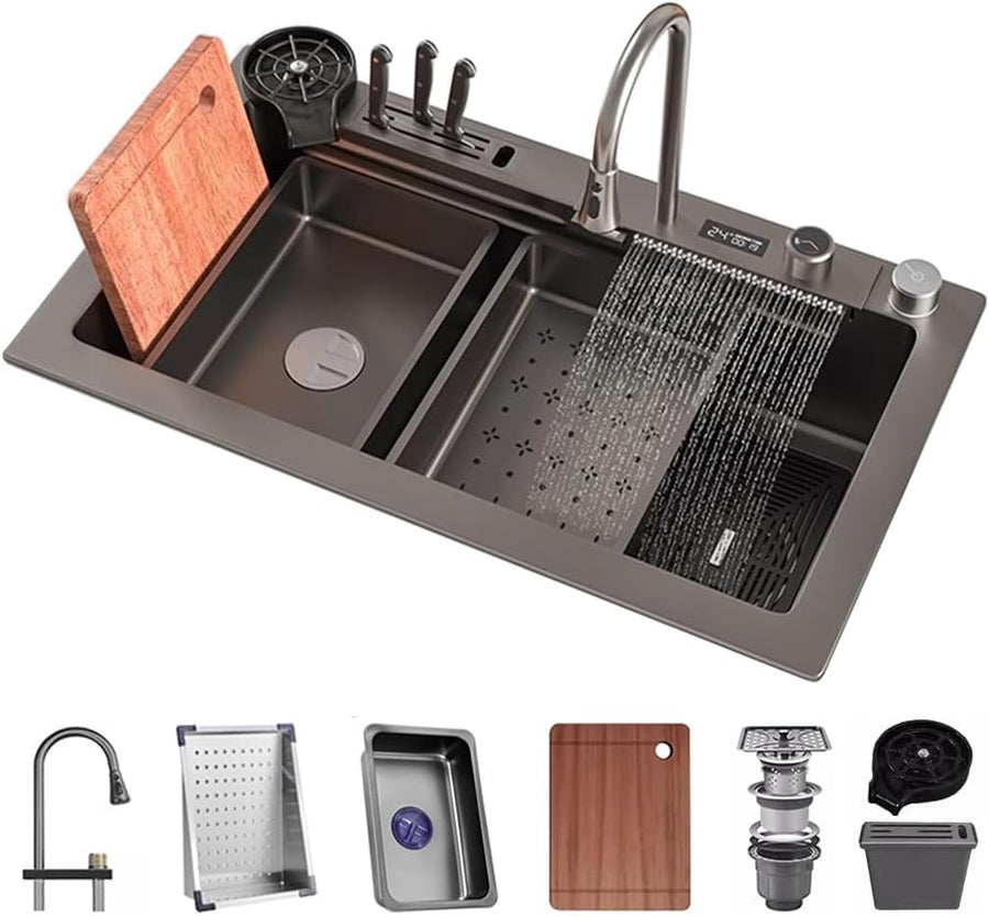 304 Edelstahl Wasserfall Waschbecken mit Digitalanzeige Bar Spüle mit Werkzeugträger Nanobeschichtet