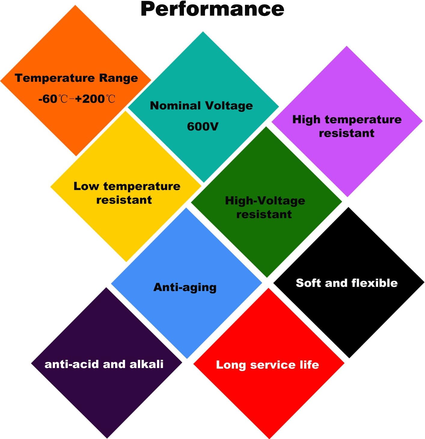 • Hochtemperaturbeständiger Silikondraht: Temp: -60 Grad Celsius +200 Grad Celsius