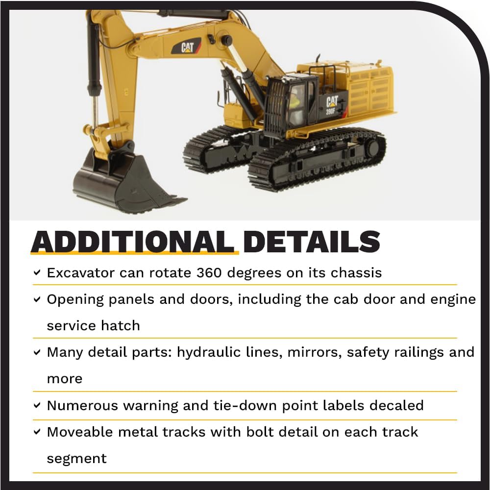 - Authentische Nachbildung mit herausragenden Details – Diecast Masters Caterpillar 390F L Hydraulikbagger im Massstab 1:50 enthält genaue Caterpillar Power Edge Farbe, Aufkleber und Handelskleidung. Dieser Bagger ist in einer Massenausgrabungsanlage