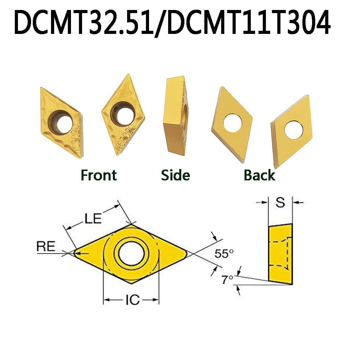 - Lieferumfang: 1 x SDJCR1616H11 Drehhalter + 1 x SDJCL1616H11 Drehhalter + 10 x DCMT32.51/DCMT11T304 Dreheinsätze + 2 x T15 Schraubenschlüssel
