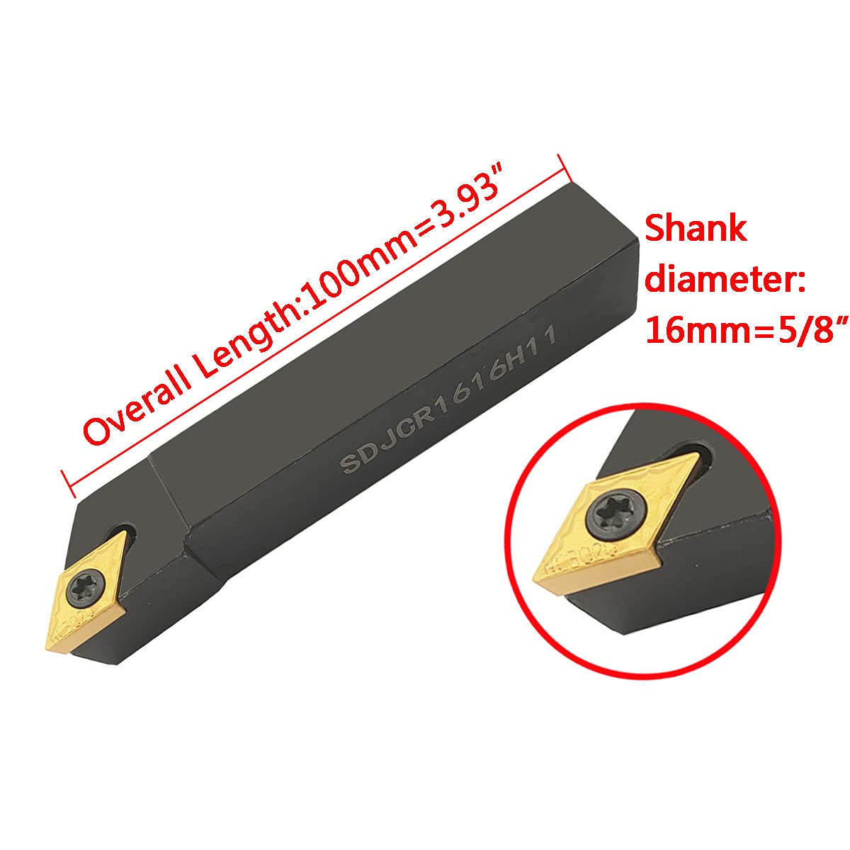- SDJCR1616H11: Gesamtlänge: 100 mm; Schaftdurchmesser: 16 mm; Richtung: rechter Schaft