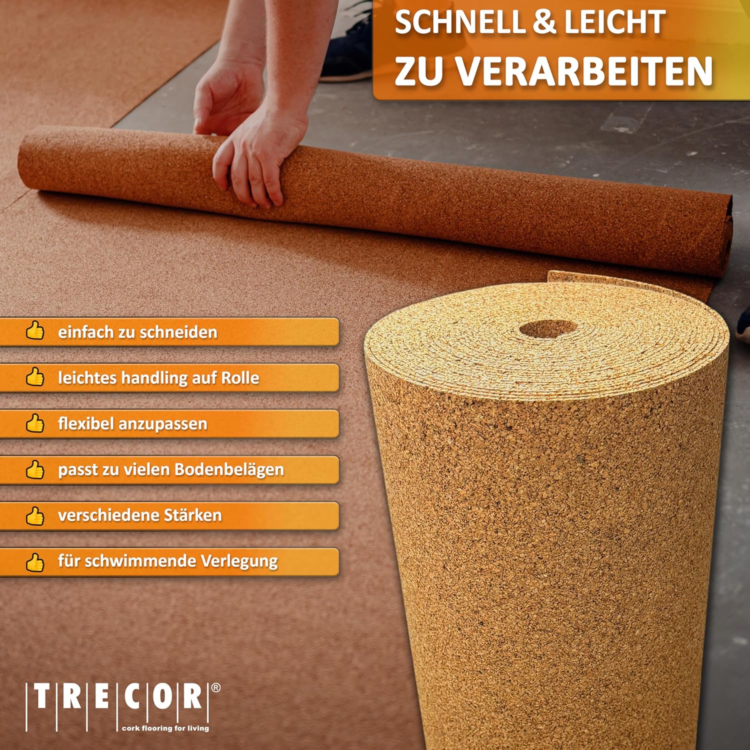1 m² | Trittschalldämmung TRECOR Rollenkork - Stärke 10 mm - Akustik Tritt- und Gehschalldämmung für