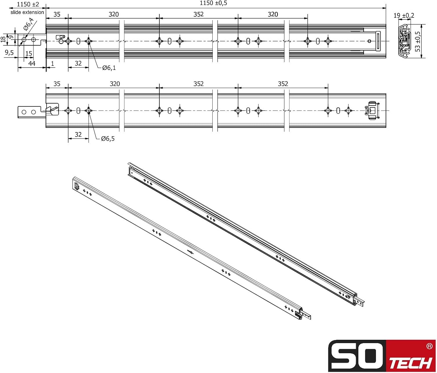 - ✅ EIGENSCHAFTEN: Material: Stahl verzinkt / Kugelkäfig mit gehärteten Stahlkugeln / Länge: 1150 mm (ausgezogen 2297 +/- 3 mm) / Höhe: 53 mm / Breite: 19 mm / Dynamische Belastbarkeit: bis 100 Kg (pro Paar)