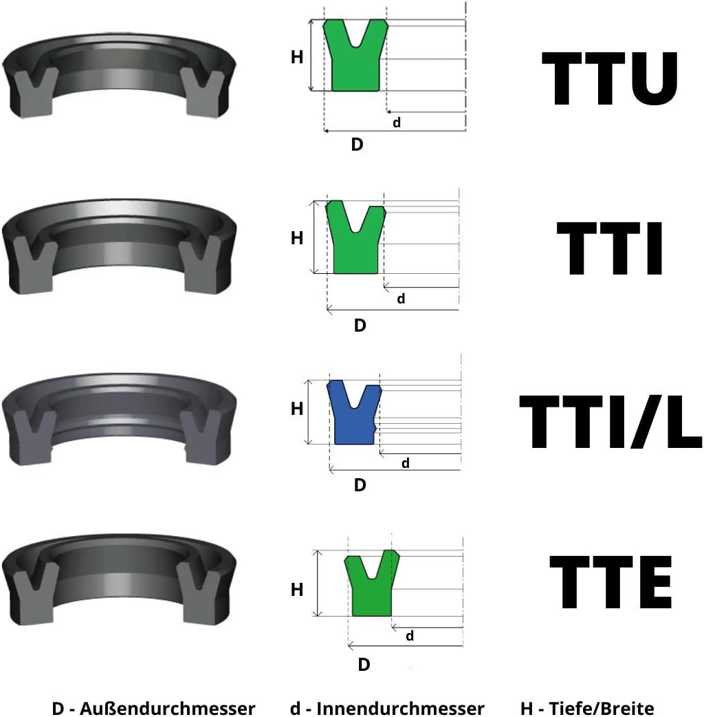 • Technische Spezifikationen. Typ: TTU | Innendurchmesser: 130 mm | Aussendurchmesser: 150 mm | Arbeitsdruck: < 16 MPa | Arbeitsgeschwindigkeit: < 0.5 m/s | Höhe: 10 mm | Farbe: Schwarz/Rot/Navy Blau (Farbe kann variieren - je nach Vorrat)