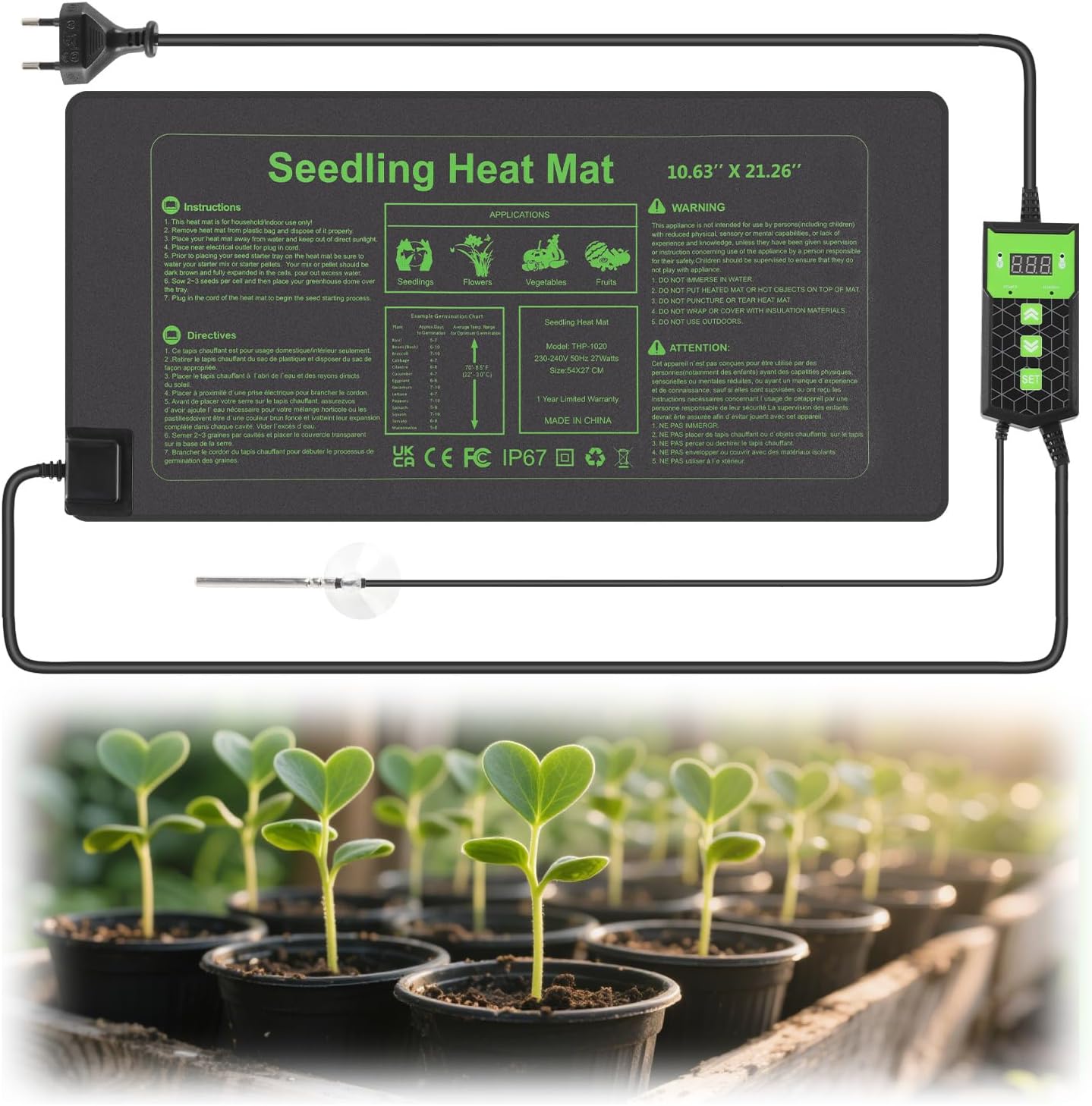 - 【Flexible Temperaturregelung】Das Heizmatte pflanzen ist mit Thermostat und Sensor ausgestattet, der Temperaturregelungsbereich reicht von 5 bis 45 Grad Celsius, und es kann auch frei zwischen Celsius und Fahrenheit umschalten, Echtzeitanzeige der