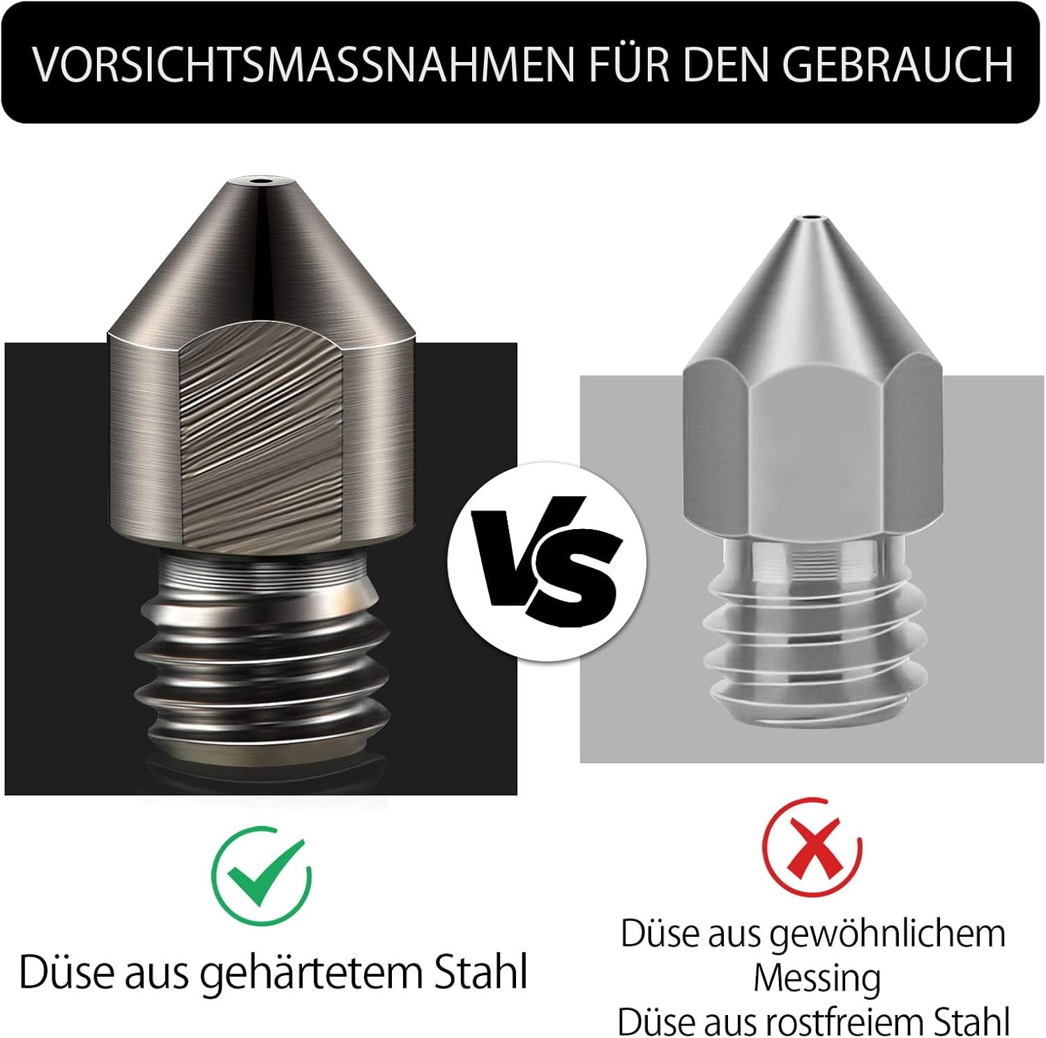 • Tipps: 1. Vor dem Gebrauch trocknen, um die beste Druckqualität zu erzielen (65 °C, 8 h). Drucken und Aufrechterhaltung der Luftfeuchtigkeit im Behälter < 20% RH (versiegelt, mit Trockenmittel). 2. Verwenden Sie keine herkömmlichen Messingdüsen! Da