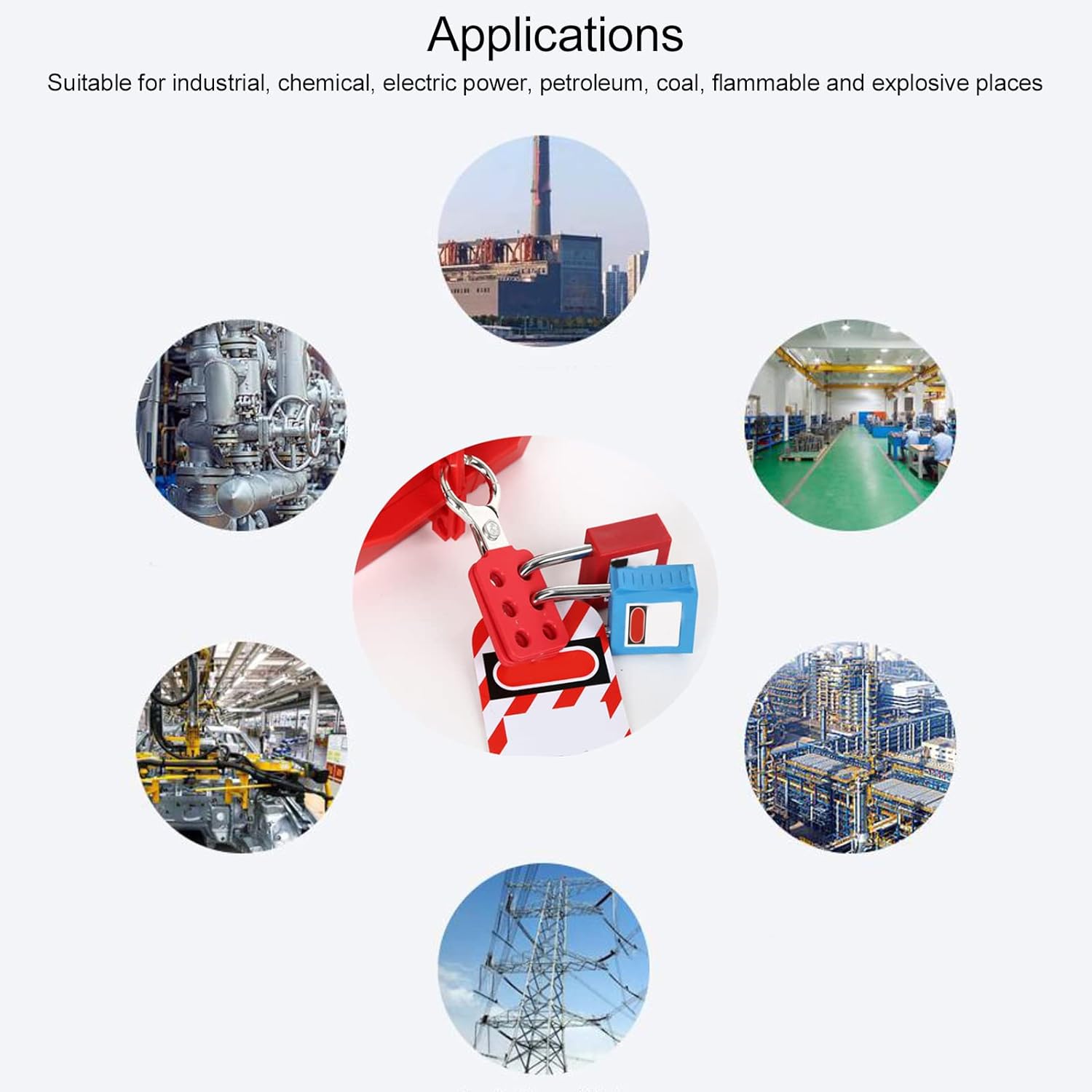 • 【Universal Lockout】: Befestigen Sie jeden Verriegelungspunkt, um sicherzustellen, dass das Gerät während Reparaturen oder Anpassungen nicht funktioniert. Kann mit Sicherheitsverriegelungs-Tagout-Schlössern, Tags und anderen