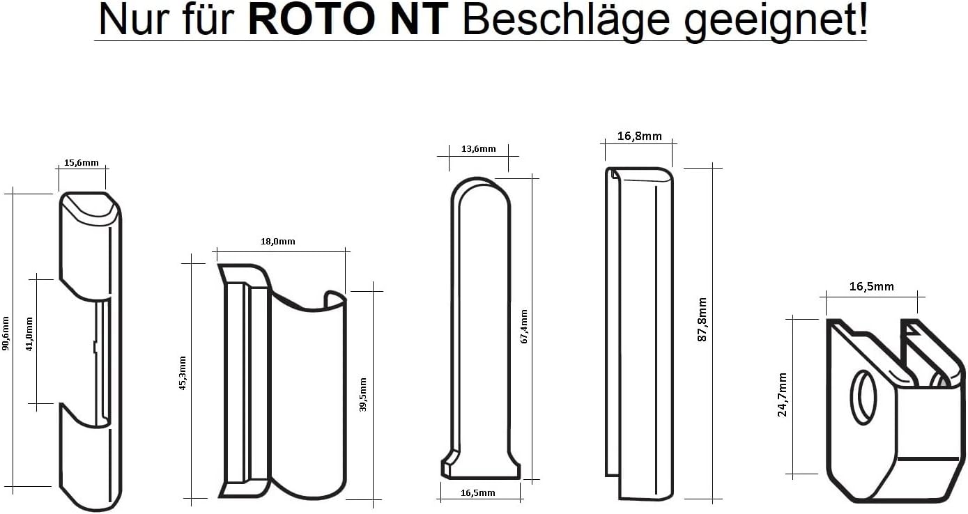 - ROTO NT Kappenset K für5-teilig für Kunststofffenster. ROTO NT KAPPEN PASSEN NUR AUF ROTO NT STECKVERBINDER!