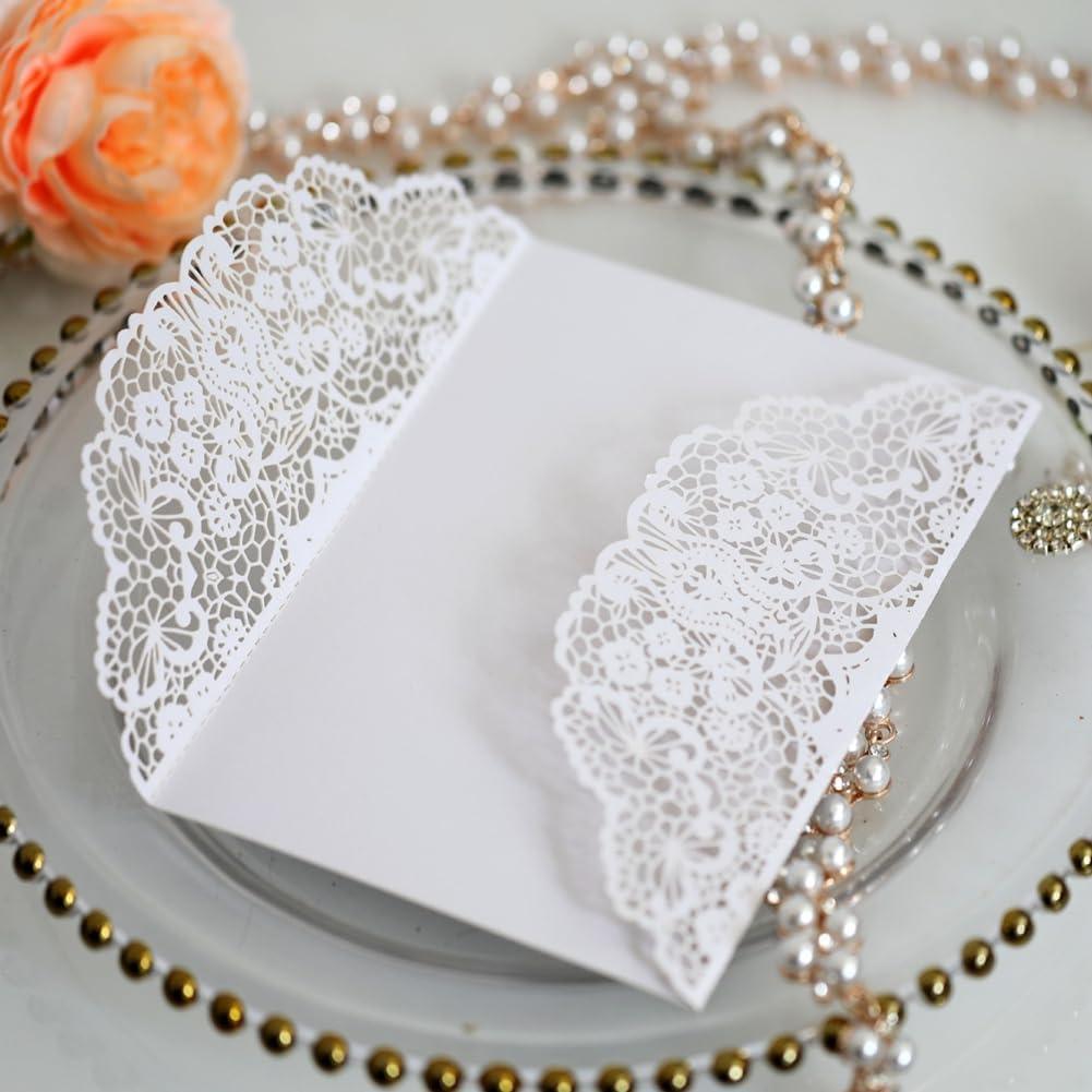 - Material: Die Party-Einladungen sind aus Perlglanzpapier und Kraftpapier, Das lasergeschnittene Retro-Spitzendesign wirkt elegant, anmutig, romantisch,nicht leicht zu brechen, zu verformen oder zu verblassen, zuverlässig und robust, widerstehen dem
