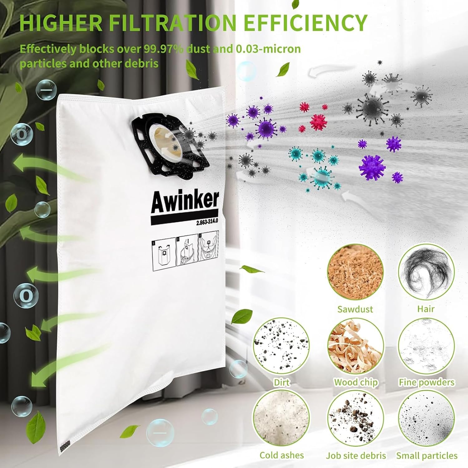 - Hohe Adsorptionsfähigkeit: Passend für Kärcher KWD1 hochwertige Staubsauger-Filterbeutel können schnell Staub, Haare, nassen Schmutz und anderen feinen Schmutz adsorbieren, was die Luftqualität in Ihrem Haus verbessern und die gesunde Wohnumgebung