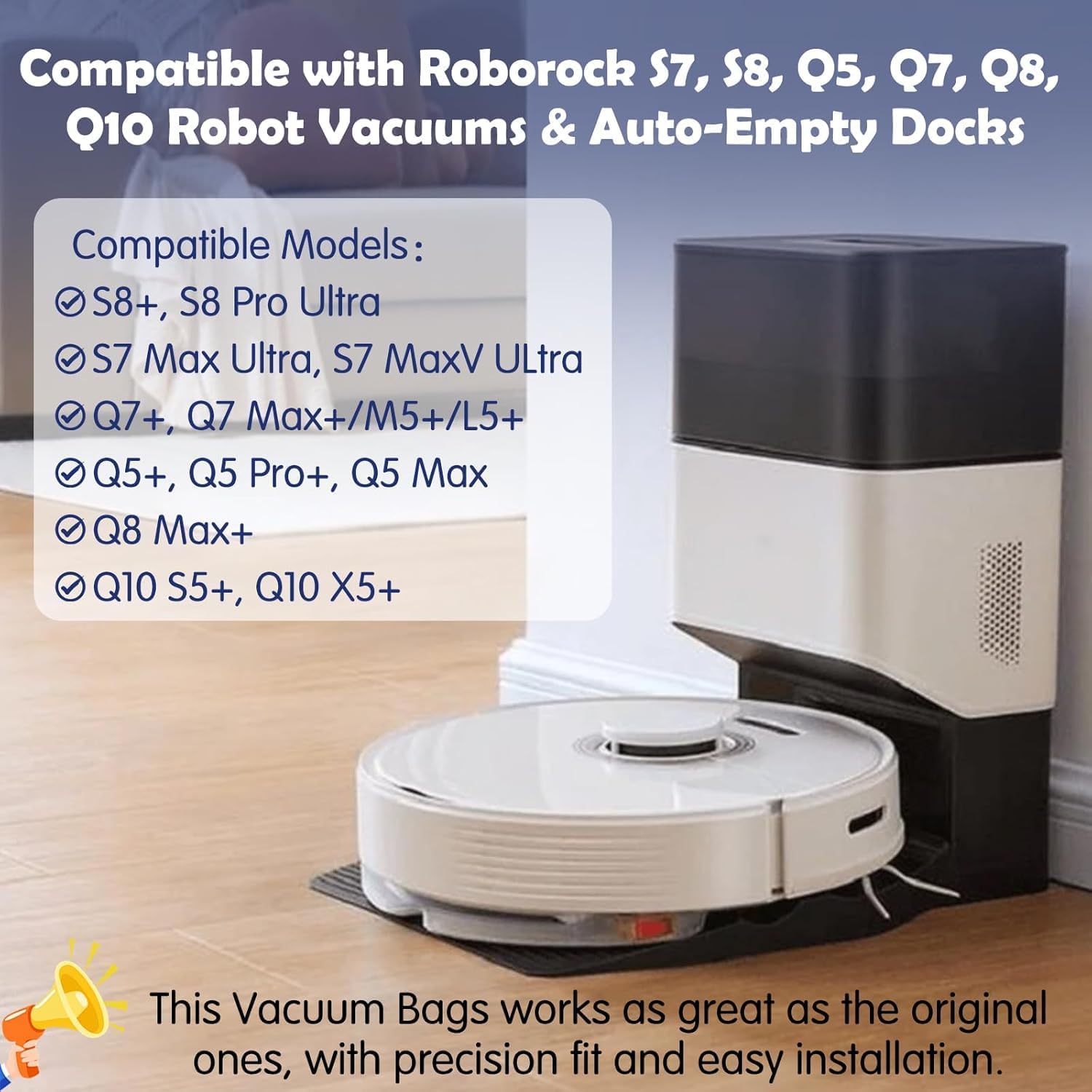 - 【Perfekt Kompatibel】Kompatibel mit Roborock Q5+ / Q5 Pro+ / Q7+/Q7 MAX/Q7 MAX+ / Q8 Max+ / S8 Pro Ultra / S8+ / S7 Max Ultra / S7 MaxV Ultra Robot Vacuum & Auto-Empty Dock Pure. Dieser Vakuumbeutel funktioniert genauso gut wie die Originale, mit