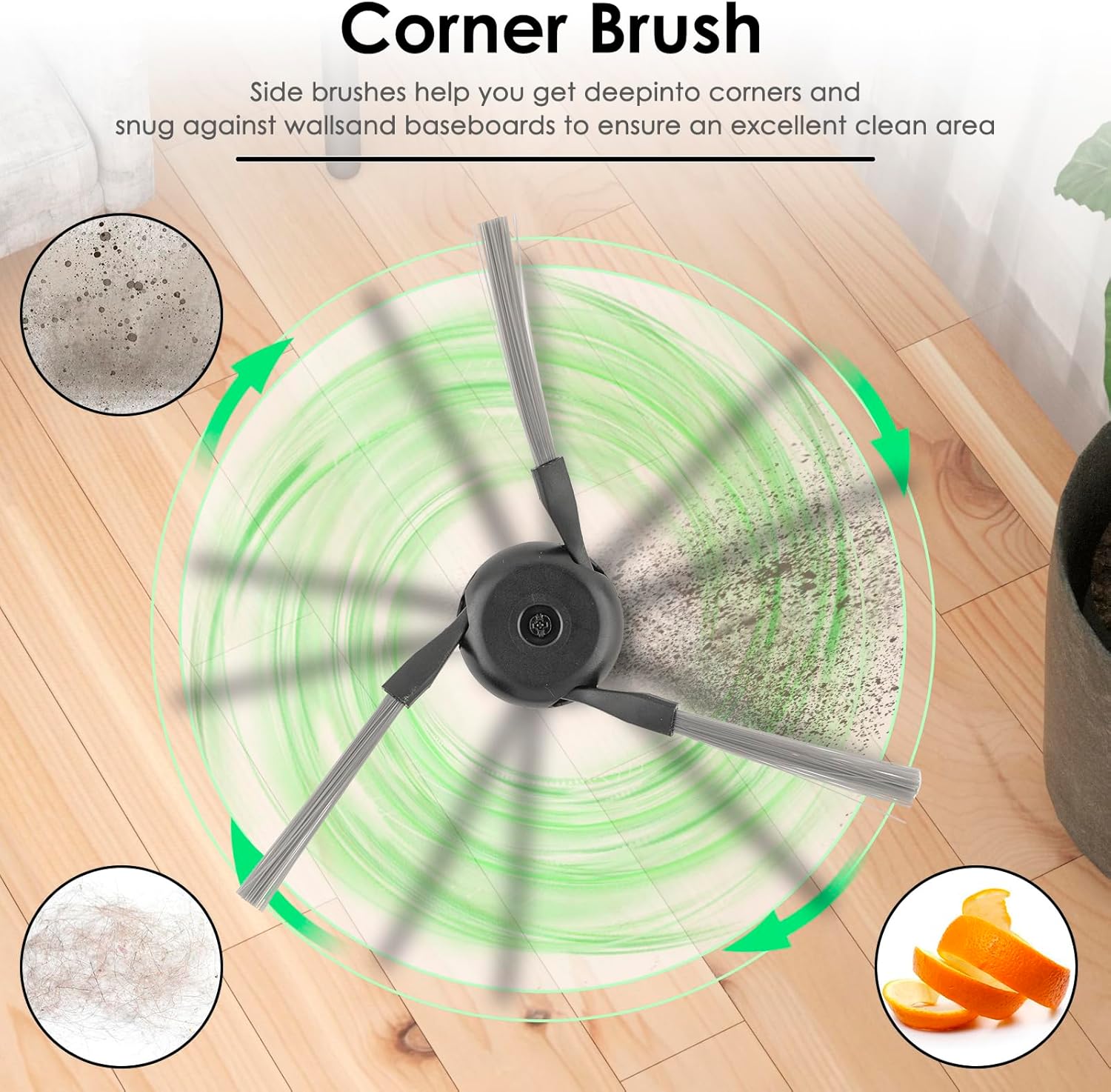 - 【Seitenbürste】6 Seitenbürsten sind im Lieferumfang enthalten. Das innovative Strukturdesign der Seitenbürste verhindert effektiv das Verfangen von Haaren und anderen Abfällen und verbessert die Fähigkeit, Abfälle aufzusammeln. Es kann tief in
