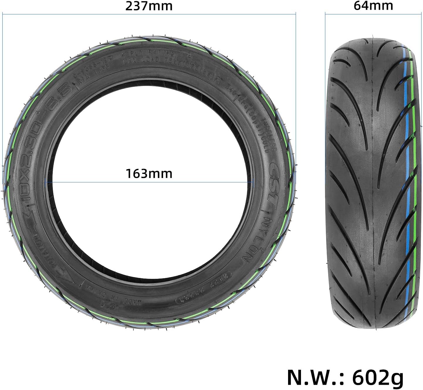 - [Scooter Ersatzreifen] 10 x 2,30-6,5 CST Schlauchlosreifen, kein selbstheilender kleber. Gewicht: 0,6 kg/Stück