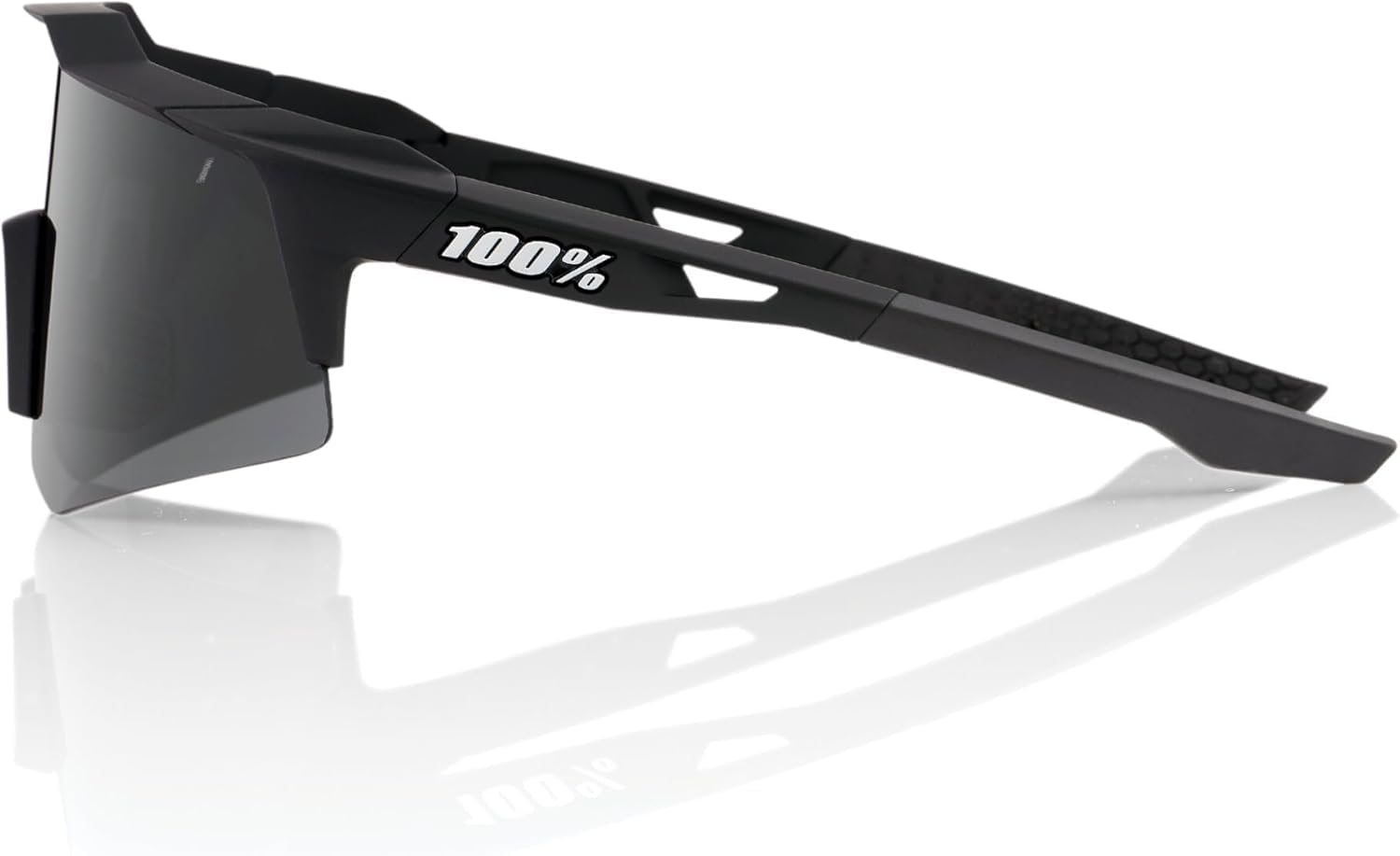 PRODUKTBESCHREIBUNGEN Die 100% Speedcraft Brille ist die bevorzugte Brille von Peter Sagan. Es handelt sich um die Speedcraft XS, eine Brille, die mit den besten Materialien entworfen wurde, die alle Ansprüche von Sportlern auf hohem Niveau übertrifft und für eine leichte und bequeme Passform sorgt. Daran zeigt, dass das 100% ige Engagement für die Entwicklung hochwertiger Wettkampfprodukte nicht mit den Masken endet. Die Brille ist in zwei Ausführungen erhältlich, eine mit der schmaleren Linse als die andere. Die unteren Lufteinlässe erhöhen die Belüftung bei gleichzeitiger Reduzierung der Feuchtigkeit in der Linse, wobei diese durch spezifische Linsen für alle Lichtverhältnisse austauschbar sind. Was das Modell SL (Short Lens) betrifft, ist es mit einem kürzeren Linsenprofil und einem kompakteren Nasensteg ausgestattet. Ausser dieser und der Lufteinlässe der Linse behält dieses Modell die gleichen Hochleistungseigenschaften wie Ihre Schwester. Die Box enthält ein Etui, einen Mikrofaserbeutel und ein zusätzliches Nasenpolster unterschiedlicher Grösse. Spezifikationen: - Rahmenfarbe: Schwarz - Linsenfarbe: Smoke - Lichtdurchlässigkeit: 15 % - Lichtverhältnisse: starkes Licht - Wetterbedingungen: Sonnig - Linsenart: Rauchfrei - Kategorie Linsen: 3 Eigenschaften: - Expandiertes Display Einzelobjektiv Erhöht die periphere Sicht und UV-Schutz - Verfügt über Nasenpads und Megol-Gummibügel für eine bessere Passform und Komfort - Ein grösserer Raum zwischen Linse und Gesicht erhöht den Luftstrom und verhindert Beschlagen - Die Bügel verbessern die Passform am Gesicht und absorbieren Schweiss - Das Design reduziert die Bewegung im Gesicht - Transparente Linse (Cat. 0)