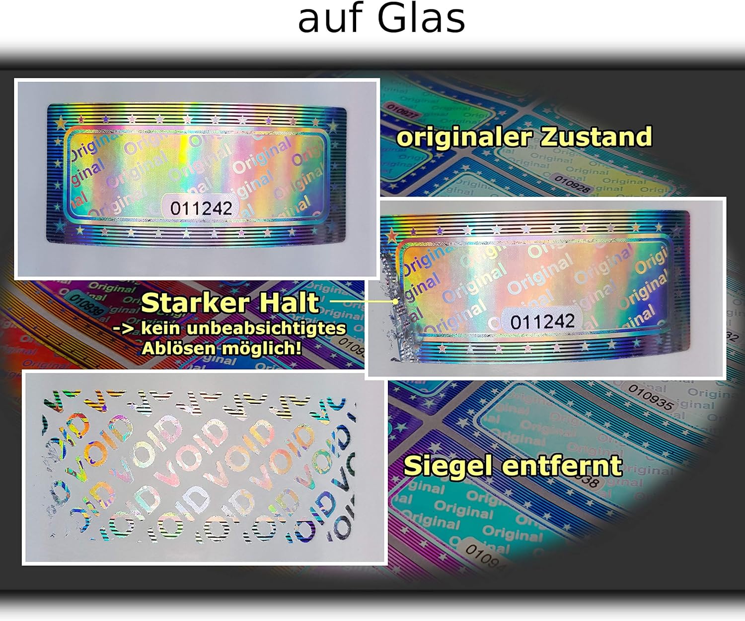 • ✅ wirksamer Schutz vor Plagiaten, Manipulationen, Fälschungen (Produktfälschung) und Nachahmungen - manipulationssicher - zeigt den Versuch einer Ablösung an
