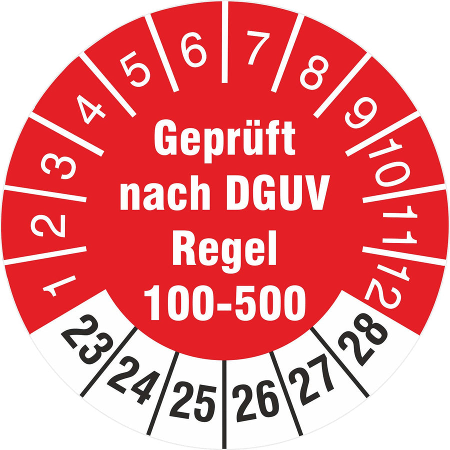 1000 Prüfetiketten geprüft nach DGUV Regel 100-500 2023-28 Prüfplaketten 30 mm 1000 30mm Durchmesser