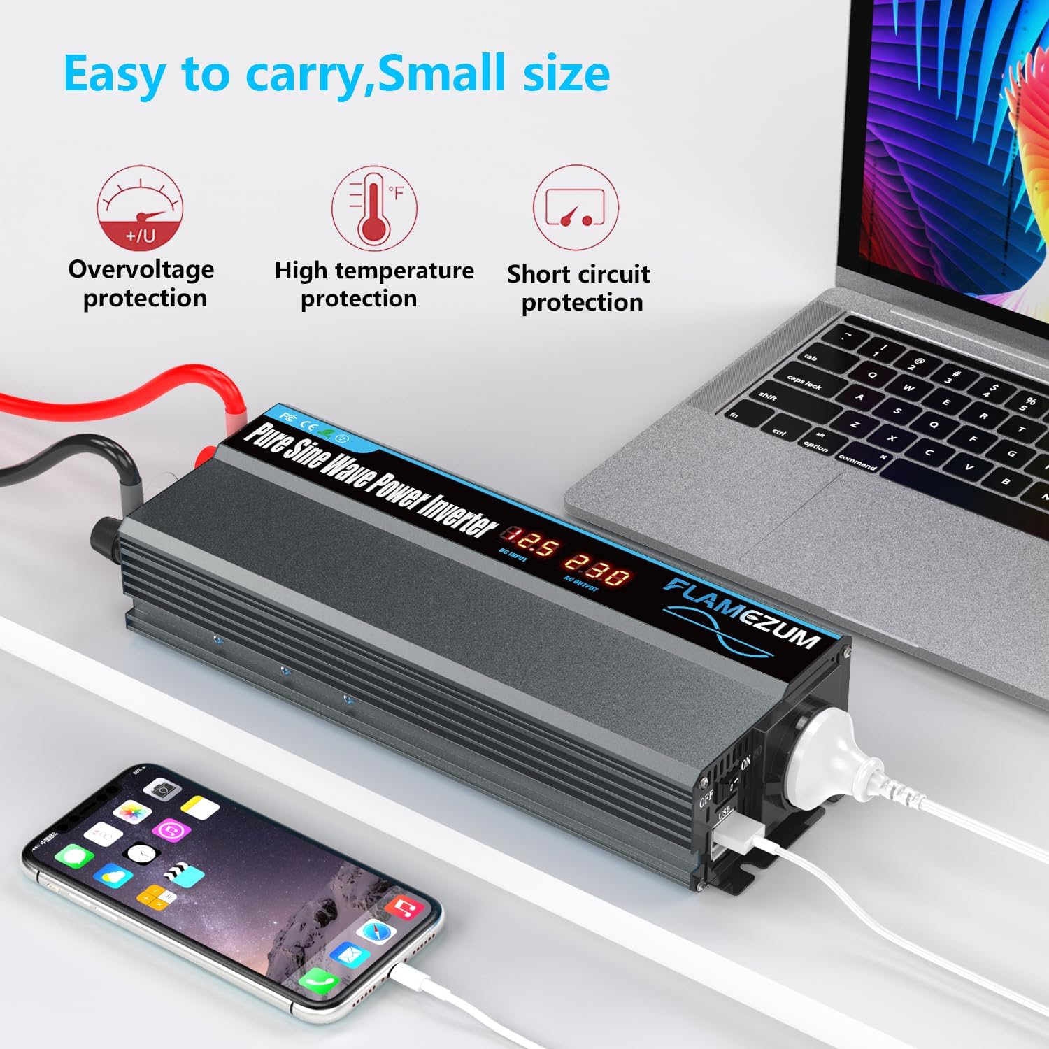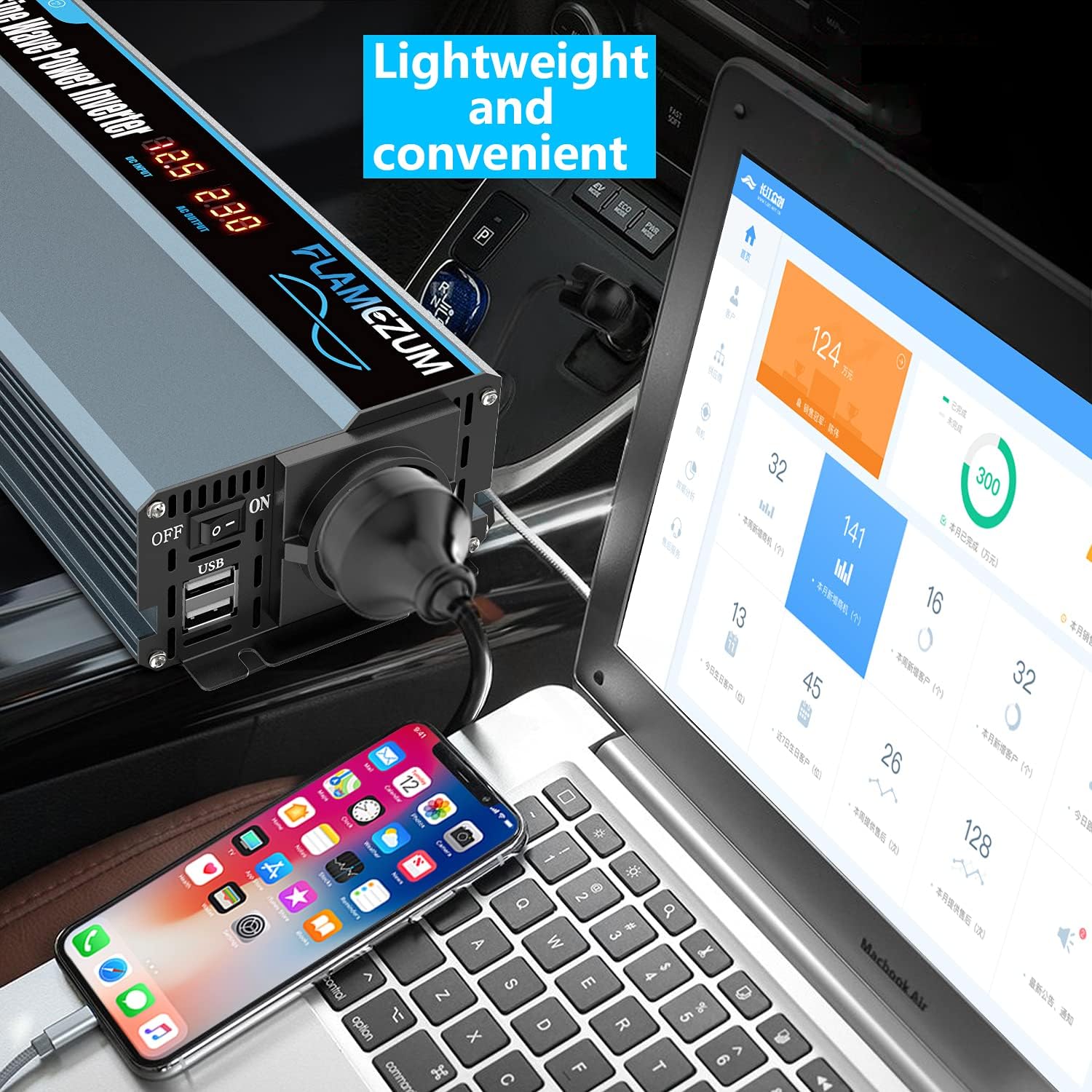 - ▶Reiner Sinus Wechselrichter◀ Die aktualisierte Version macht die Lastleistung stabiler und kann lange Zeit kontinuierlich laufen! Eingangsspannung: DC12V (10V-16V) Ausgangsspannung: AC230V±5%, Nennleistung: 1000W,Maximale Momentanleistung: 2000W,