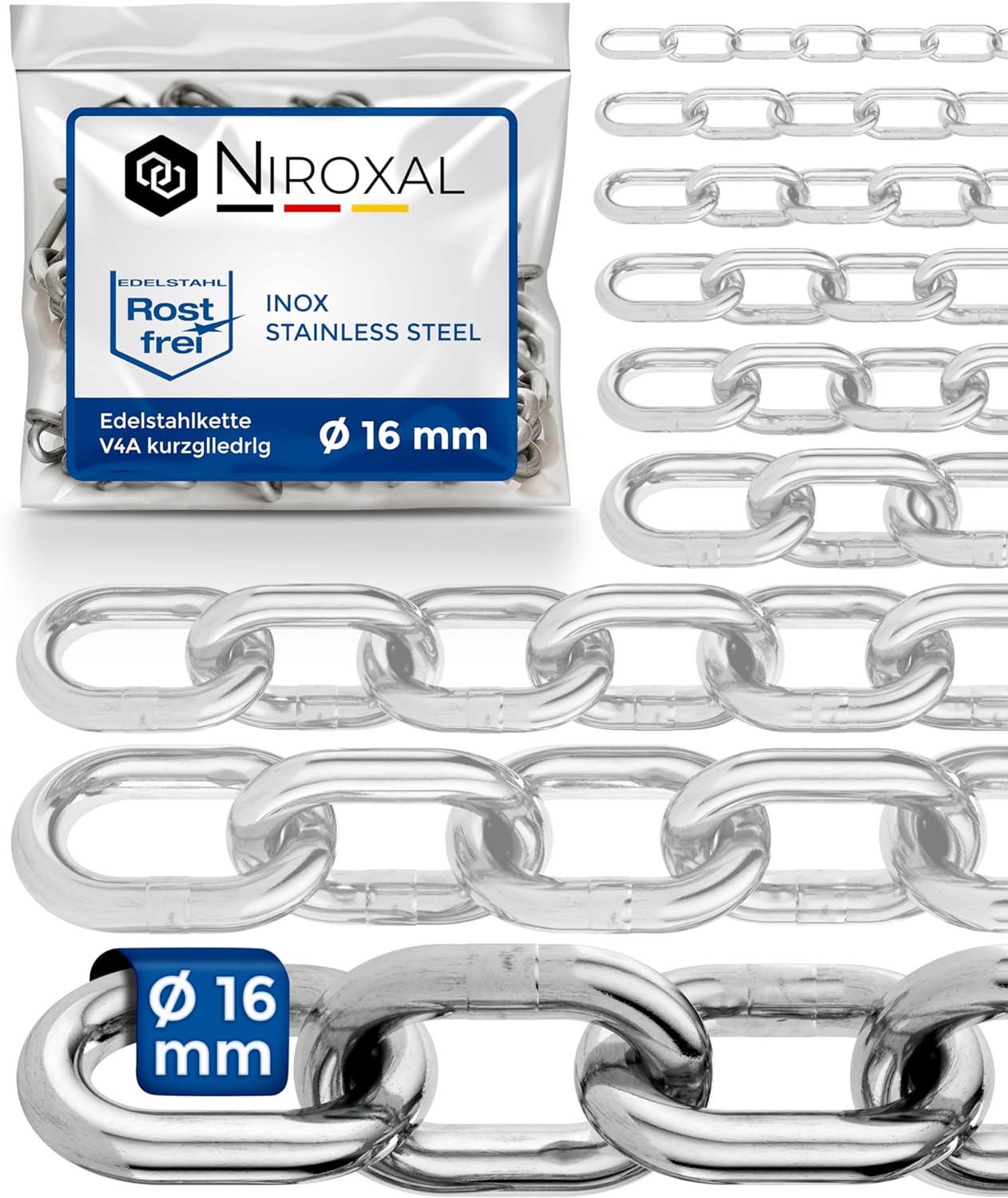 - Die kurzgliedrige Edelstahl Kette kann auf Grund der Geometrie nicht verhaspeln. Zudem ist die Eisenkette mit ihrer höheren Bruchlast für den Einsatz mit Winden geeignet. Jede Gliederkette muss an die Belastung angepasst werden, mit der gearbeitet