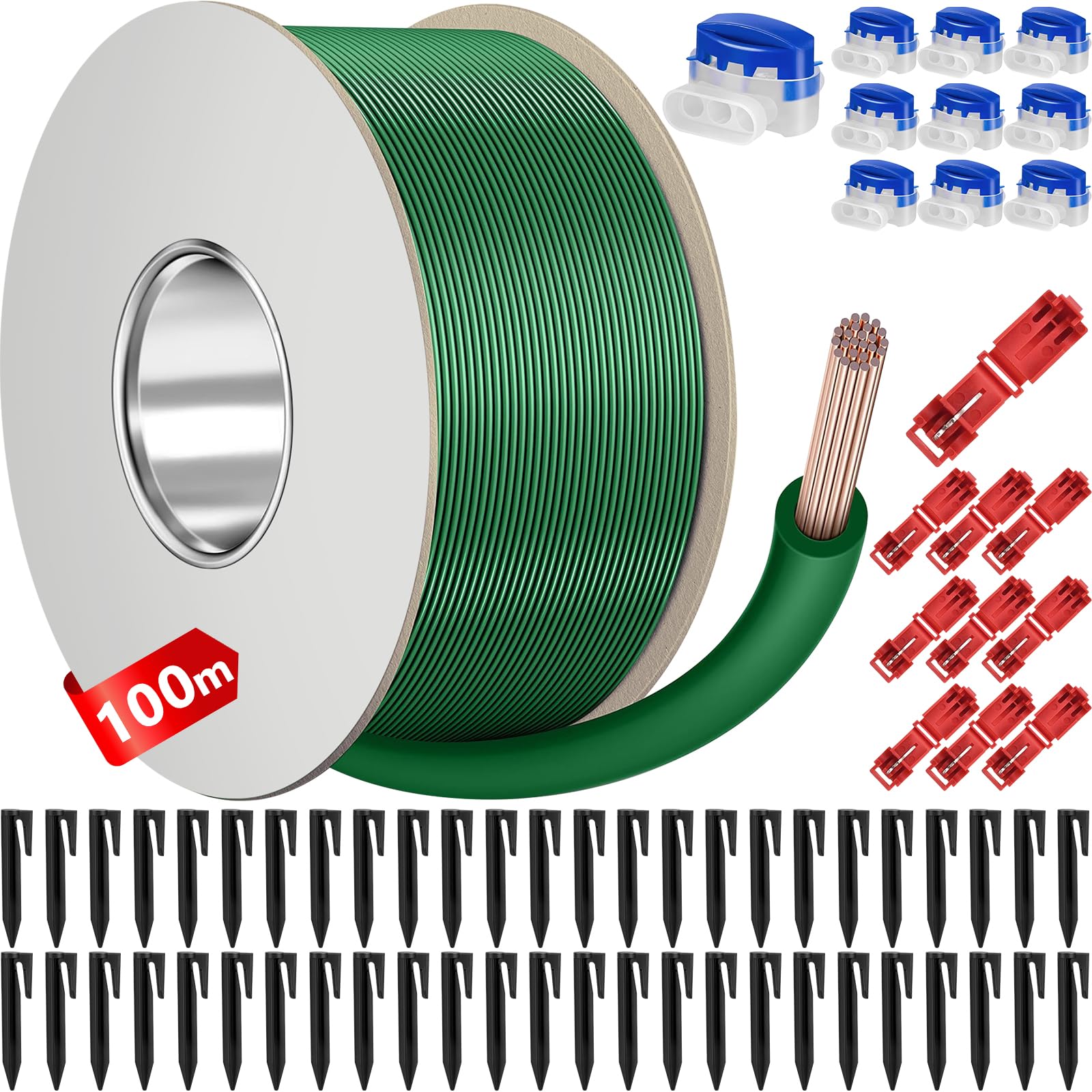 - ✔️ 【Komplettes Zubehör Set für grosse Gärten】 Dieses umfassende Rasenroboter Set enthält 100m Begrenzungskabel, 50 Erdnägel, 10 Kabelverbinder und 10 Anschlussklemmen für die Installation in grossen Gärten.
