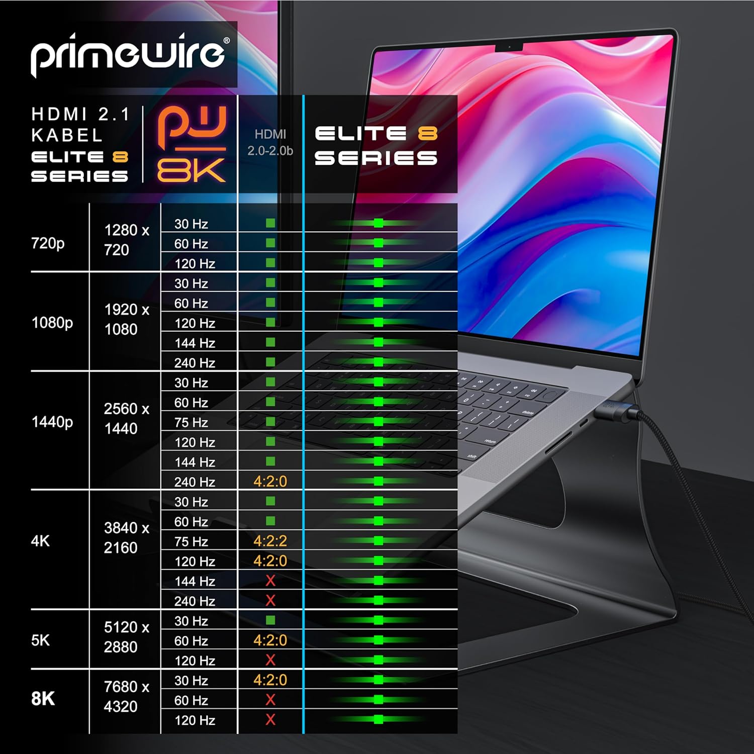 - Willkommen im Zeitalter von 8k. Geniessen Sie HD-Videos und digitale Audiosignale in höchster Qualität! Das zukunftssichere HDMI-Kabel entspricht der HDMI 2.1-Spezifikation und überträgt Bilder in exzellenter Auflösung: bis zu 7680 x 4320 @ 120 Hz