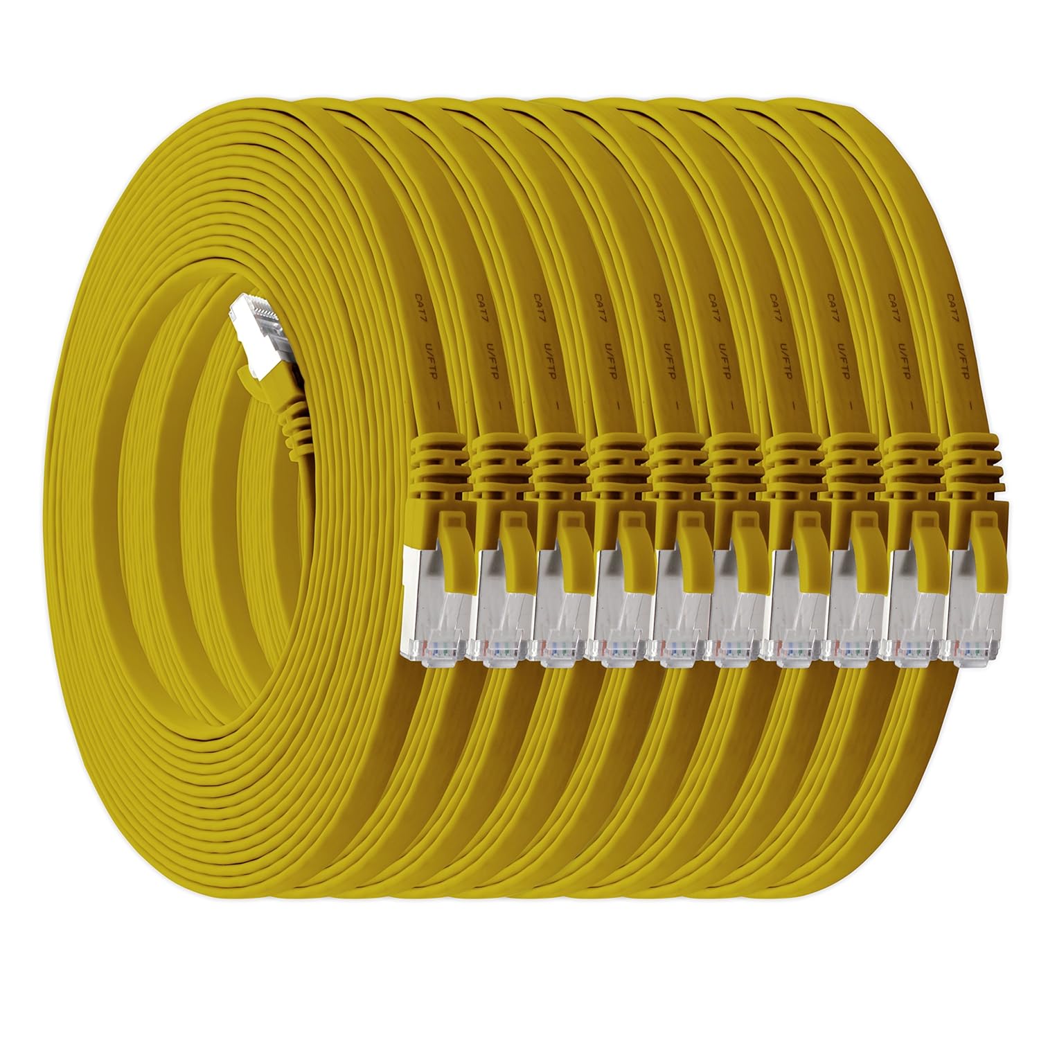 - 10m - gelb - 10 Stück Cat7 Netzwerkkabel Dünn Flach Schmal Netzwerk Flachkabel Flachbandkabel Lankabel Ethernetkabel Flat Slim kompatibel mitCat5 Cat5e Cat.6 Cat6a Kabel