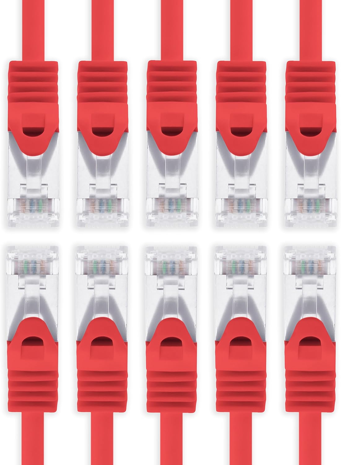 - rot - 10 Stück - 10m - Cat.7 Marken - Netzwerkkabel (Rohkabel) mit 2 x RJ45 Stecker Cat6a - doppelt geschirmt PIMF (Paare in Metal Folie) und zusätzlich Metallgeflecht, Stecker mit Knickschutzhülle , vergoldete Kontakte