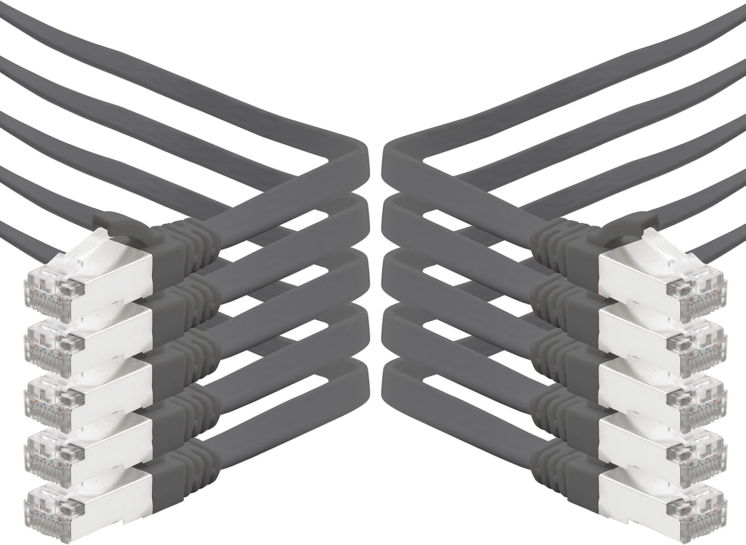 - 10m - schwarz - 10 Stück Cat7 Netzwerkkabel Dünn Flach Schmal Patchkabel Flachkabel Flachbandkabel Lankabel Ethernetkabel Flat Slim kompatibel mit Cat5 Cat5e Cat6 Cat6a Cat8 Kabel
