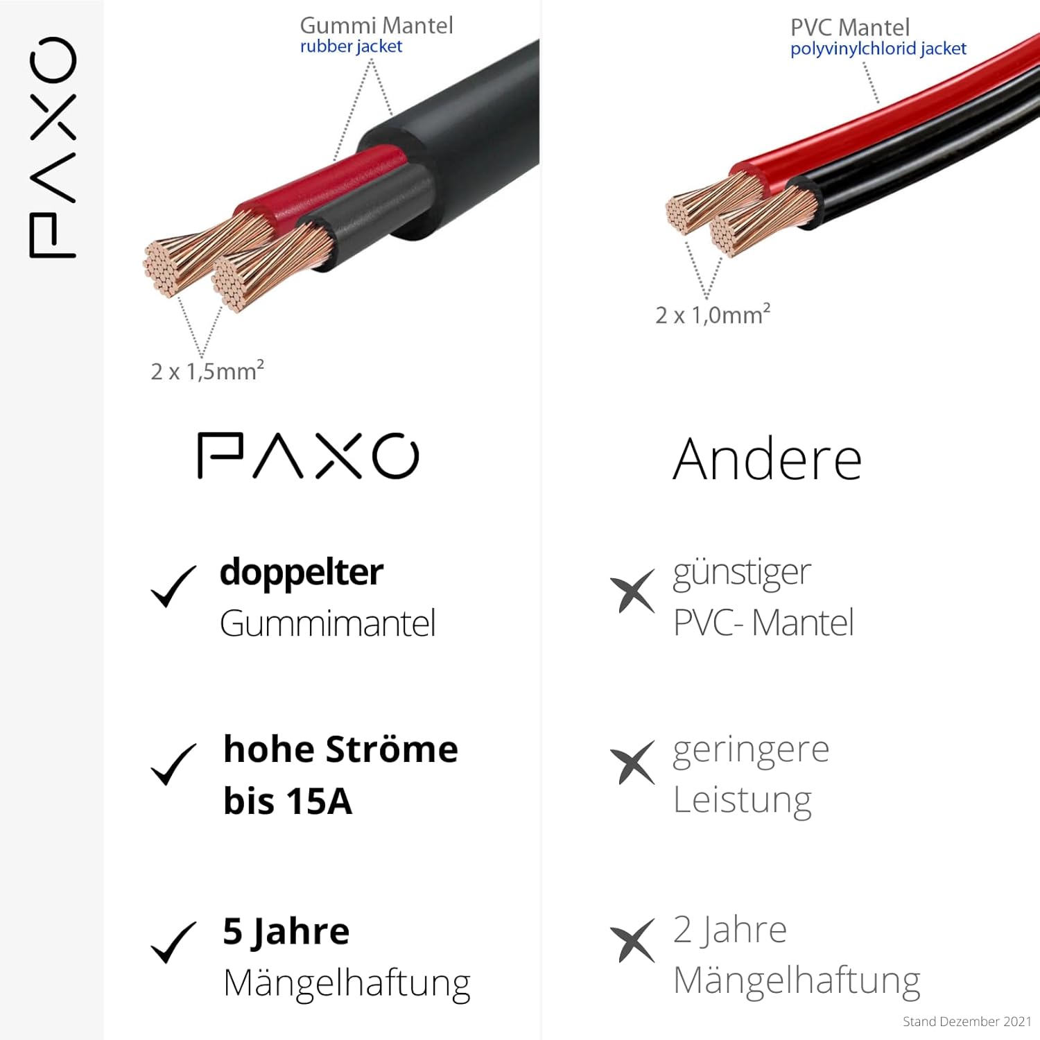 - Hochwertige H05NR 2 x 1,5mm² Vollgummimantelleitung statt günstigem PVC Kabel