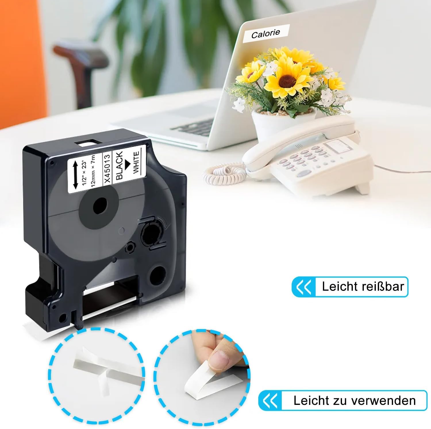 - Paket: 10 stück kompatibel für Dymo etikettenband 12mm x 7m 45013 A45013 S0720530 schwarz auf weiss band (Non-OEM)