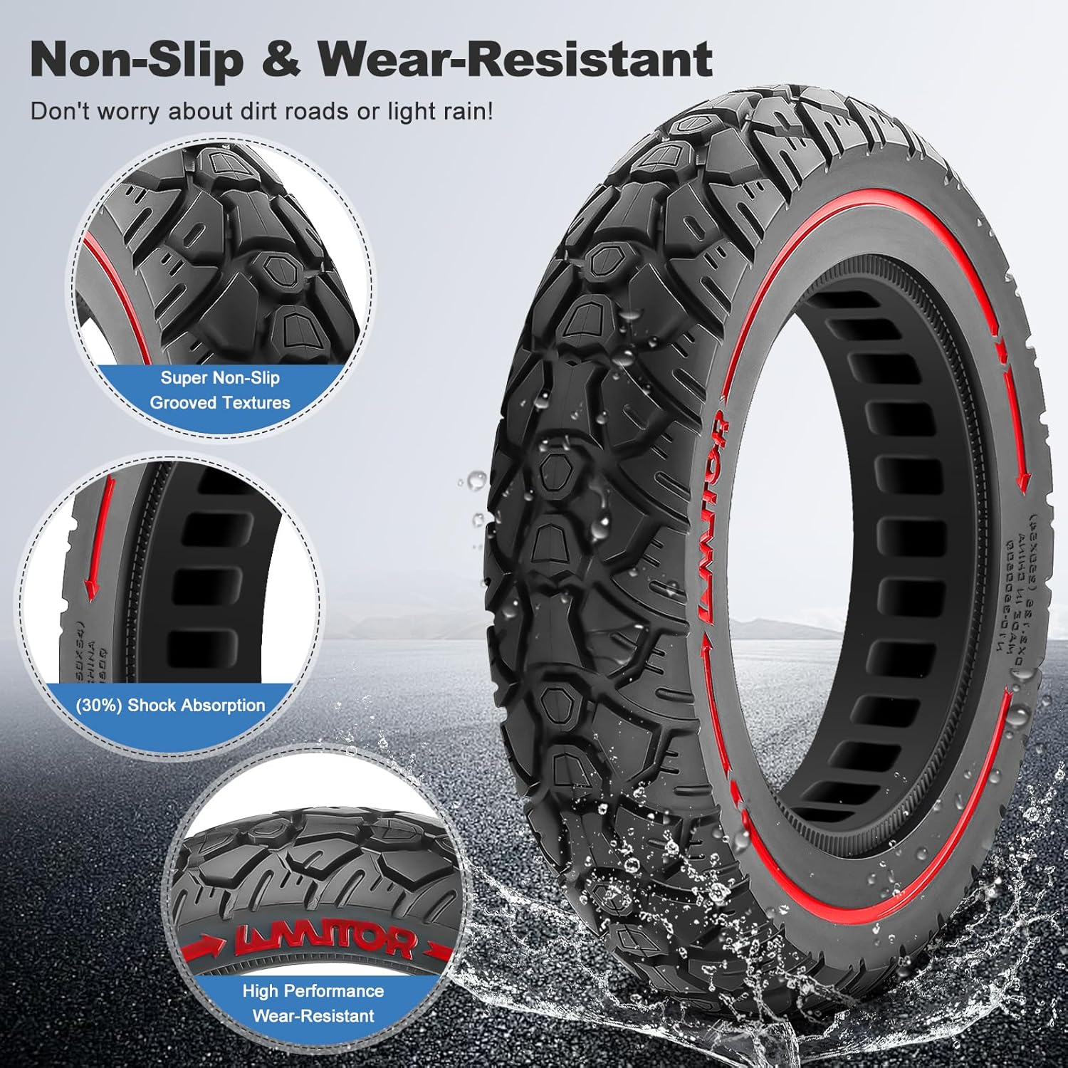 - 【Sicherer Halt Bei Jedem Wetter】- Tiefes Offroad-Profil für hervorragende traktion und schnelle entwässerung auf nassem Laub, Schlamm und losem Untergrund. Reduziert Rutschgefahr deutlich. E roller reifen 10 x 2.125 vollgummi off road