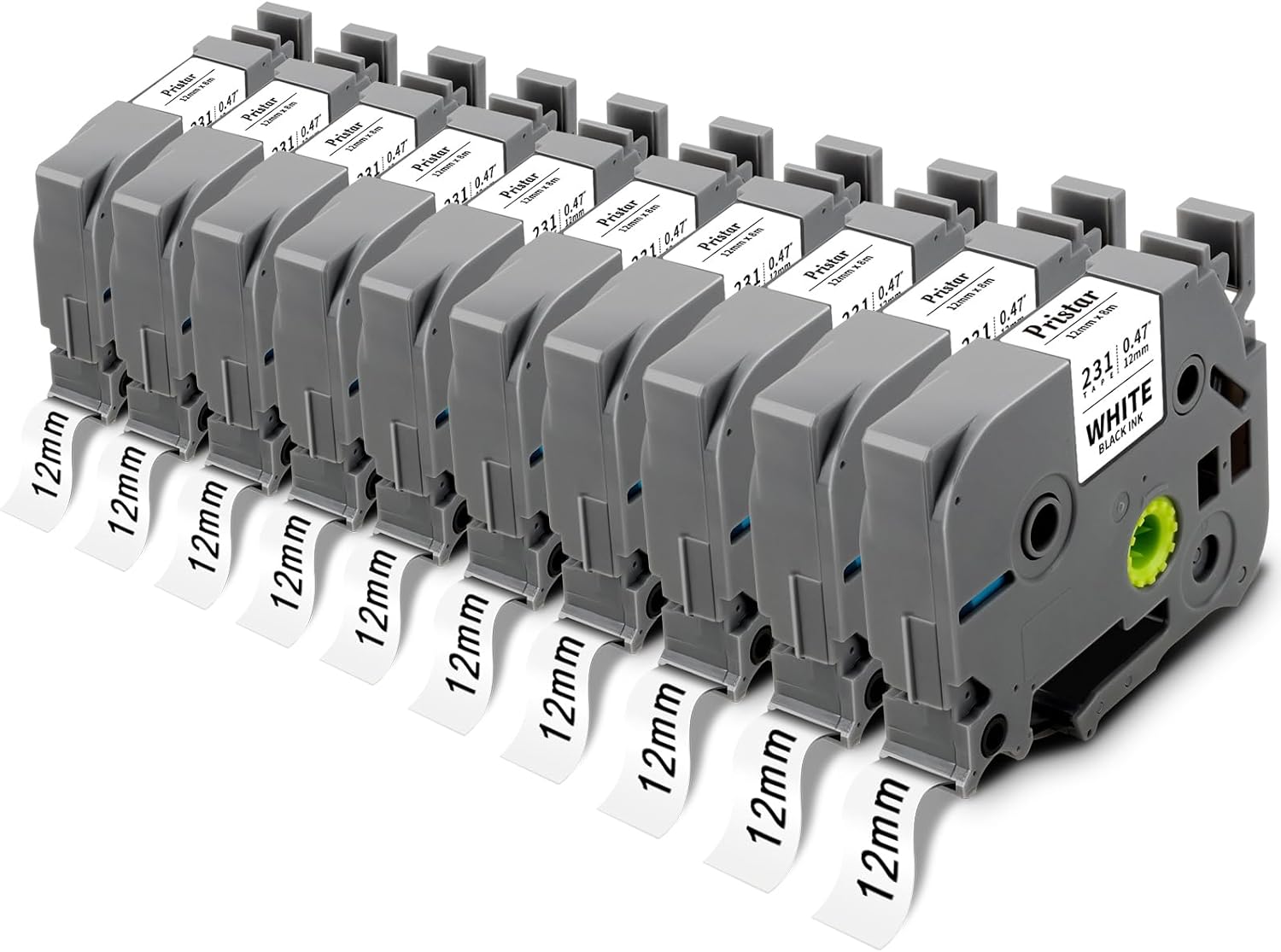 - 10 Pack Pristar Kompatibel mit Brother TZe-231 TZ 231 TZe231 Tze 12mm Schriftband (Non OEM)