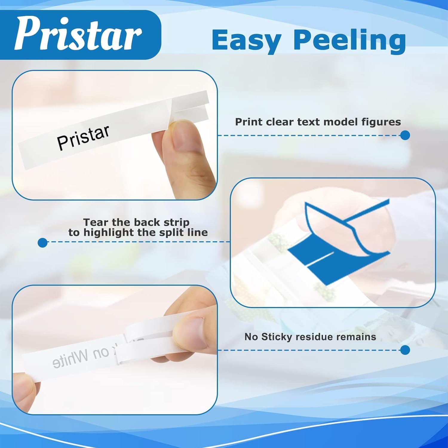 - Eigenschaften: Pristar Etikettenband selbstklebend, stark haftend auf allen Oberflächen. Chemikalienbeständig, wasserabweisend, ölbeständig, UV-beständig, abriebfest, beständig gegen hohe und niedrige Temperaturen, gute Flexibilität, keine