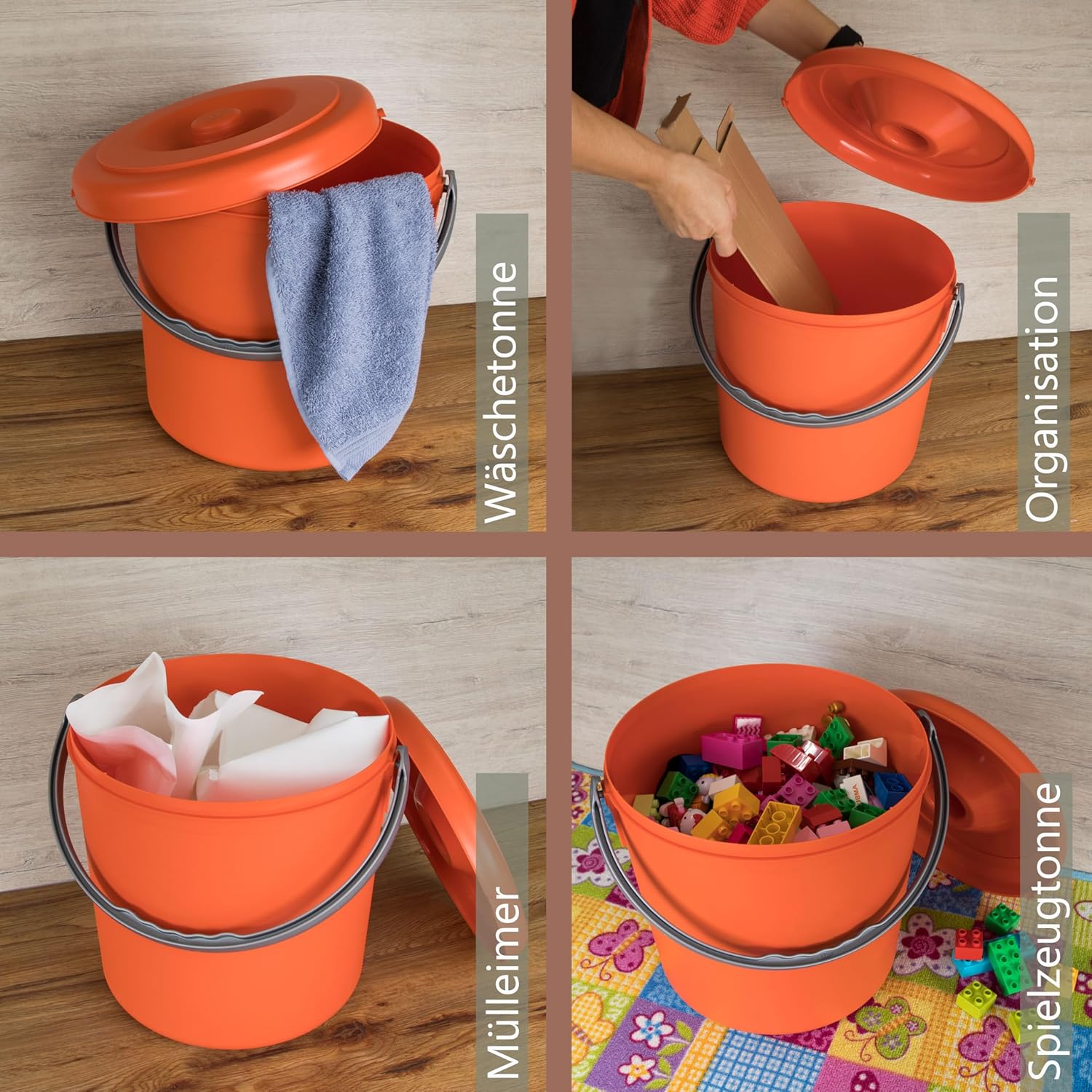 - ✅ INKLUSIVE DECKEL: Der Deckel ist durch Umlegen des Tragegriffs verschliessbar und hinterlässt so keine unangenehmen Gerüche. Praktisch als Bioeimer oder Windeleimer.