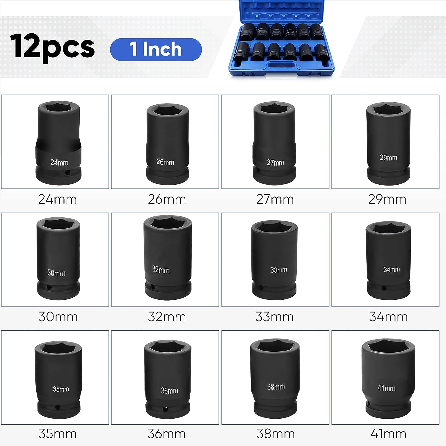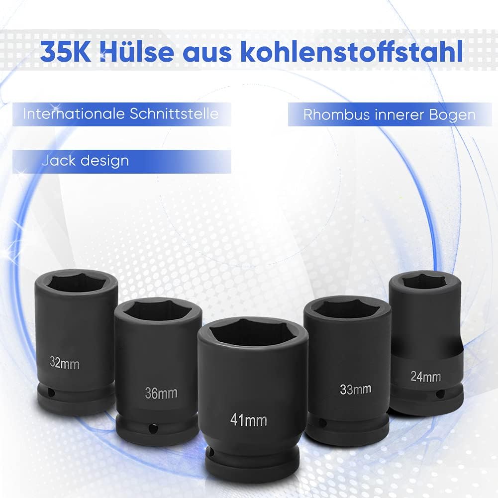- 【Umfassende Spezifikationen 】Steckschlüsseleinsätze für Schlagschrauber von 35 mm, 36 mm, 38 mm, 41 mm, 24 mm, 26 mm, 27 mm, 29 mm, 30 mm, 32 mm, 33 mm, 34 mm, Alle Teile sind ordentlich in einer Plastikbox verpackt, die tragbar ist