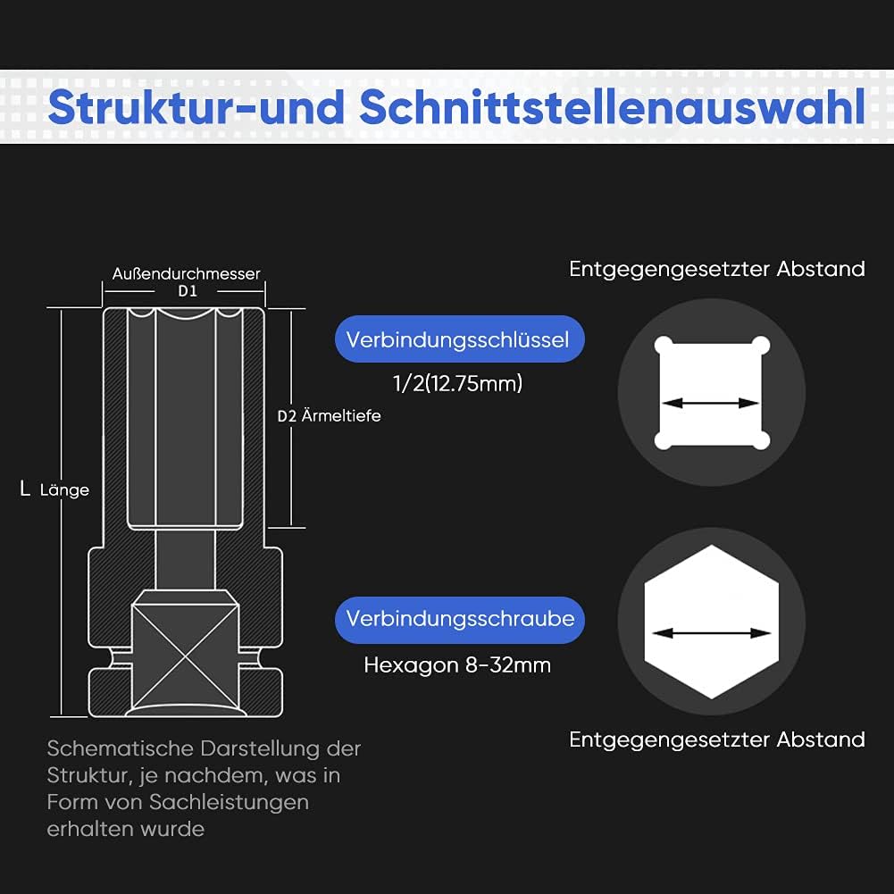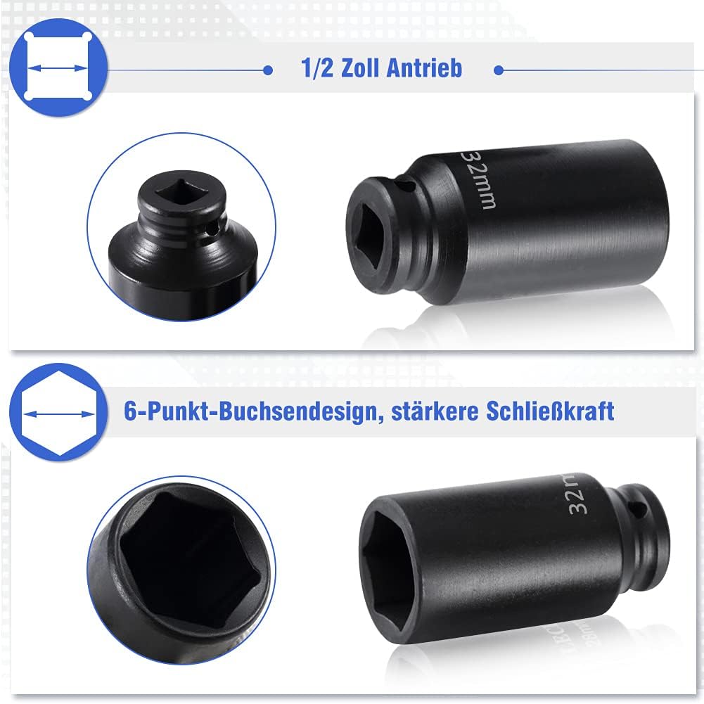 - 【Hervorragende Leistung】Gehärtete und angelassene, hochfeste Vanadiumstahlbuchsen aus Chrom bieten ein überlegenes Drehmoment für eine höhere Drehkraft, Hergestellt aus Chrom-Molybdän-Stahl mit Wärmebehandlung für zusätzliche Festigkeit und
