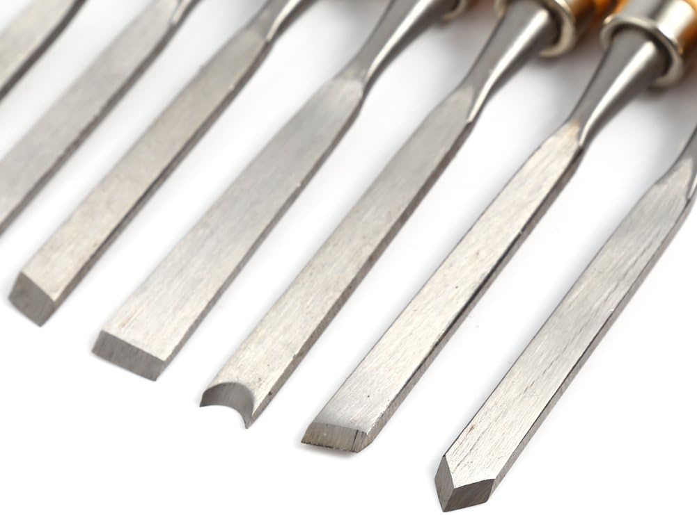 - Profi Meissel Set: Beitel aus angereichertem 65# Manganstahl für präzise und detaillierte Holzschnitzarbeiten, inklusive gerade Beitel, gekrümmter Beitel, abgerundeter Beitel, insgesamt 12 Hohlbeitel. Für jeden Anwendungsbereich hat das Holzmeissel