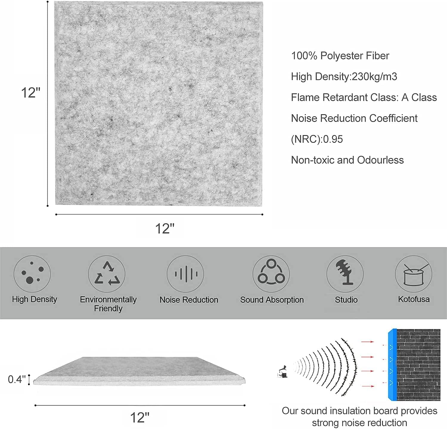 - 【Hochwertiges Material】Hergestellt von importiertem Polyester, kein Staub, hohe Dichte von 230 kg / m3. besser als Traditionelle Akustikschaum. Dieser Material hat eine breitbandige Schallabsorption über einem weiten Frequenzbereich. Durch hohe