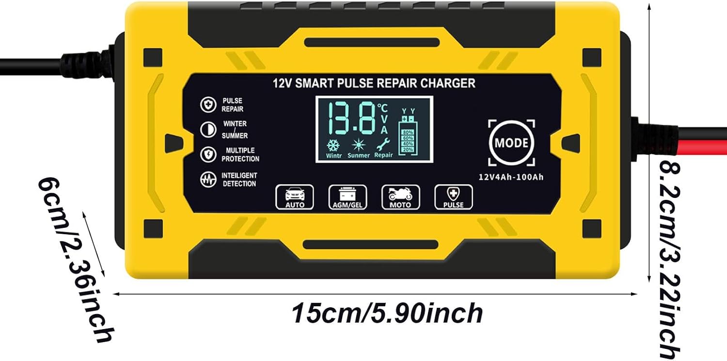 - Intelligente Technologie: Mit intelligenter Pulsreparaturtechnologie, die die Lebensdauer Ihrer Blei-Säure-Batterien effektiv aktiviert und verlängert und sowohl zum Laden als auch zur Wartung geeignet ist