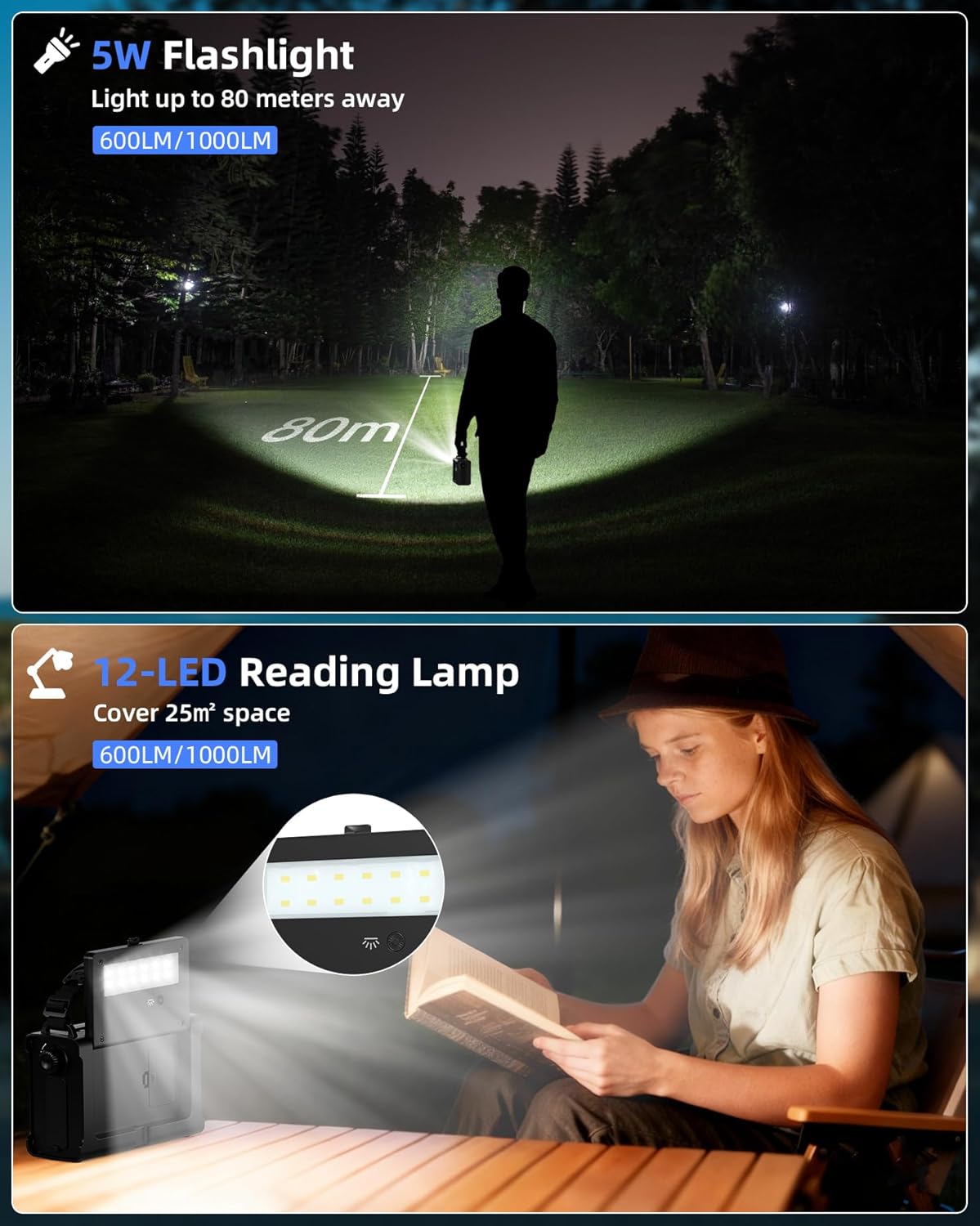 - 【12000 mAh "Energie-Festung" – Ihre zuverlässige Energiequelle】: Ausgestattet mit einer hochwertigen 12000 mAh wiederaufladbarer Akku. Bei Stromausfall, im Notfall oder Outdoor-Abenteuer versorgt sie Ihre Geräte über USB- und Type-C-Ausgänge