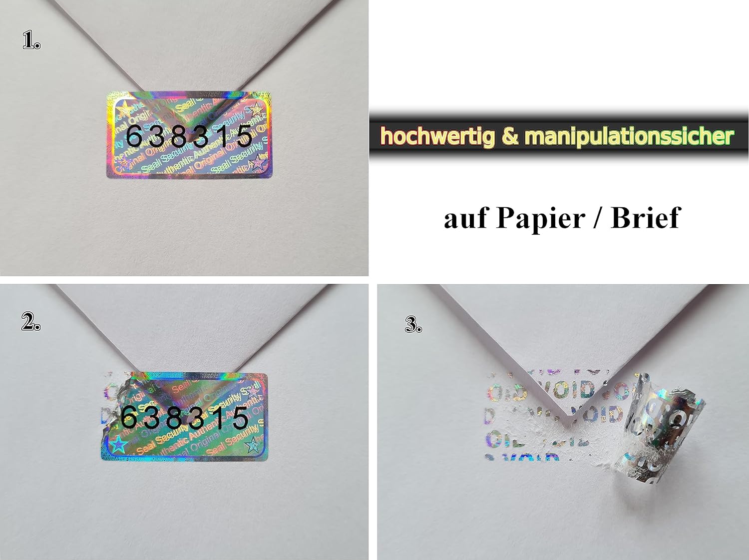 - ✅ wirksamer Schutz vor Plagiaten, Manipulationen, Fälschungen (Produktfälschung) und Nachahmungen - manipulationssicher - zeigt den Versuch einer Ablösung an