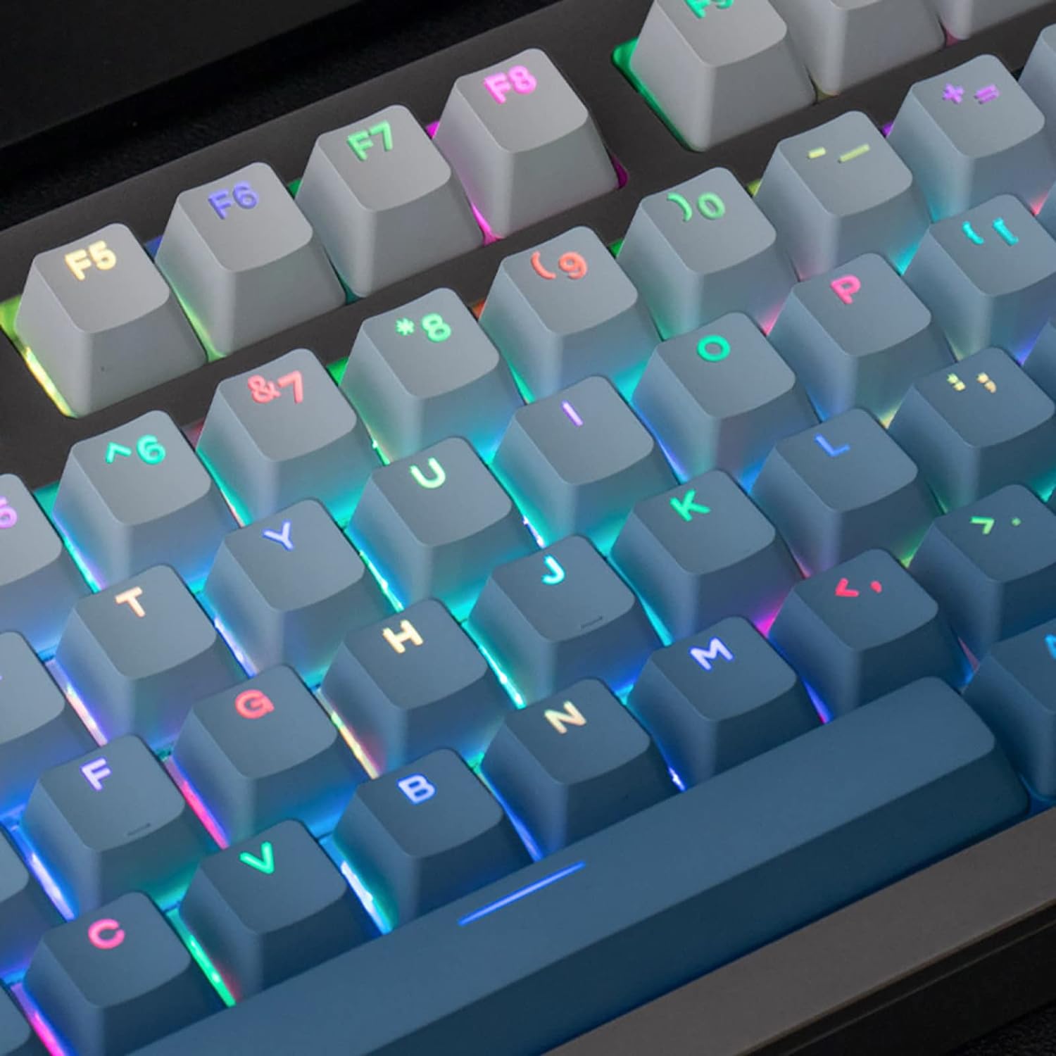 • Backlit Keycaps-Diese Keycap-Hintergrundbeleuchtung Designs, gepaart mit Farbverlauf blau, verleihen Ihrer Tastatur einen neuen Look. Für RGB-Tastaturen wäre es eine gute Wahl.