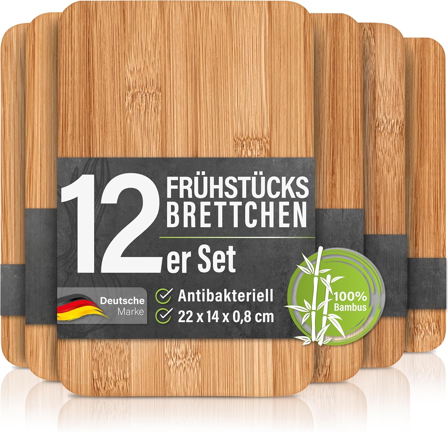 - 12ER-SET FRÜHSTÜCKSBRETTCHEN - Sie erhalten ein 12er-Set Frühstücksbretter aus Bambus Holz mit einem Mass von je 22 x 14 x 0,8 cm - ideal für den täglichen Gebrauch.