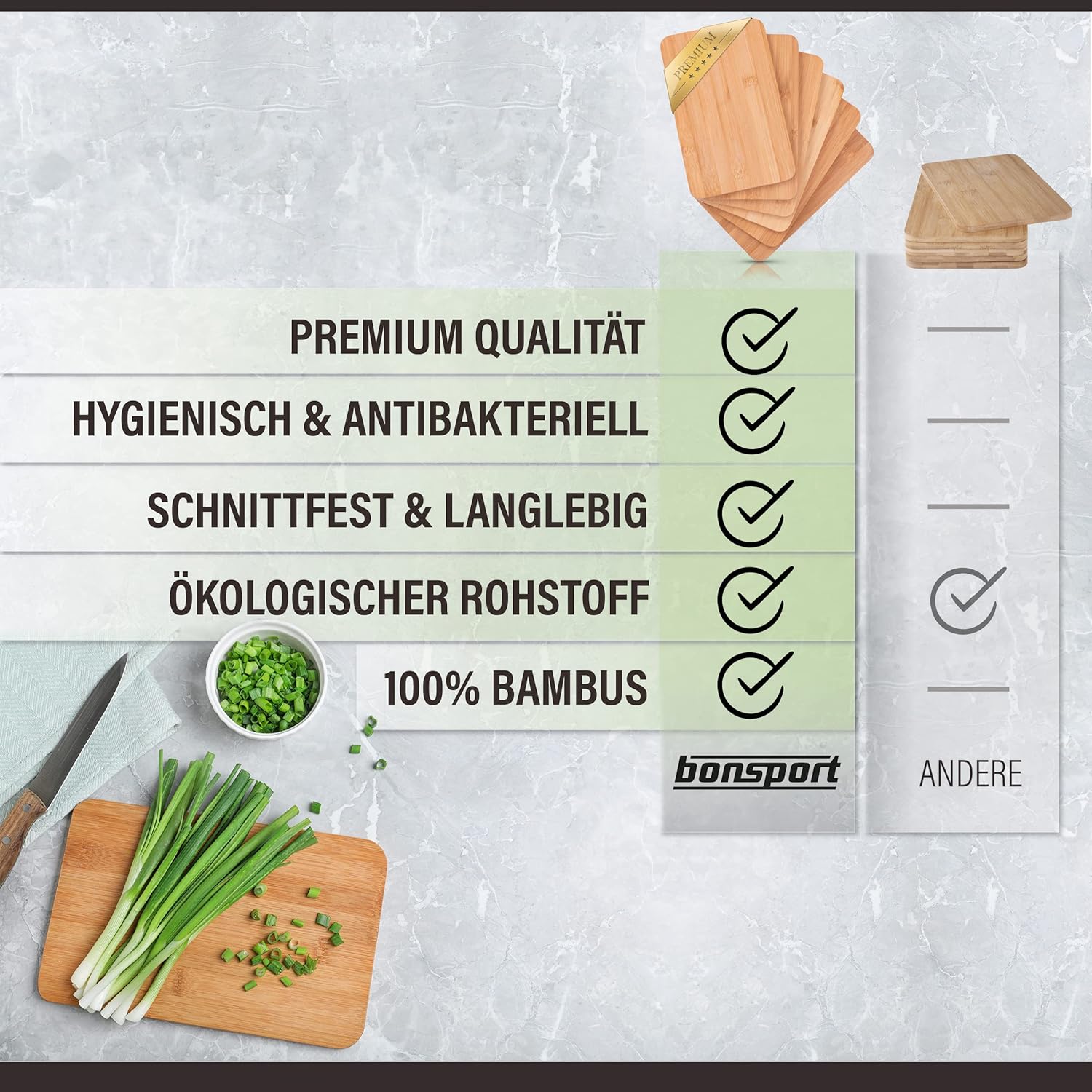 - ROBUST & PFLEGELEICHT - die Holzbrettchen bieten nicht nur eine hohe Schnittfestigkeit, sondern sind auch schonend für die Messerklinge. Zum Reinigen einfach mit Wasser, Schwamm und einem milden Spülmittel abspülen.