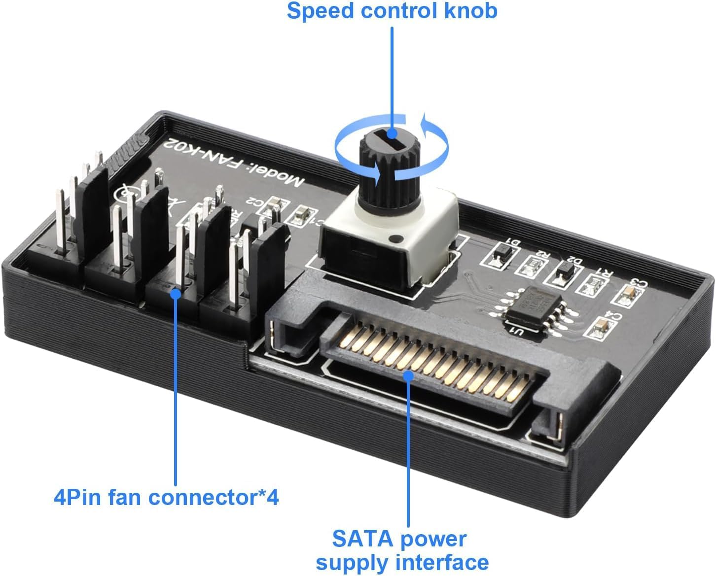 - Lieferumfang: 1x 4-poliger 12-V-PWM-Lüfterdrehzahlregler, 1x Molex-zu-SATA-Kabel