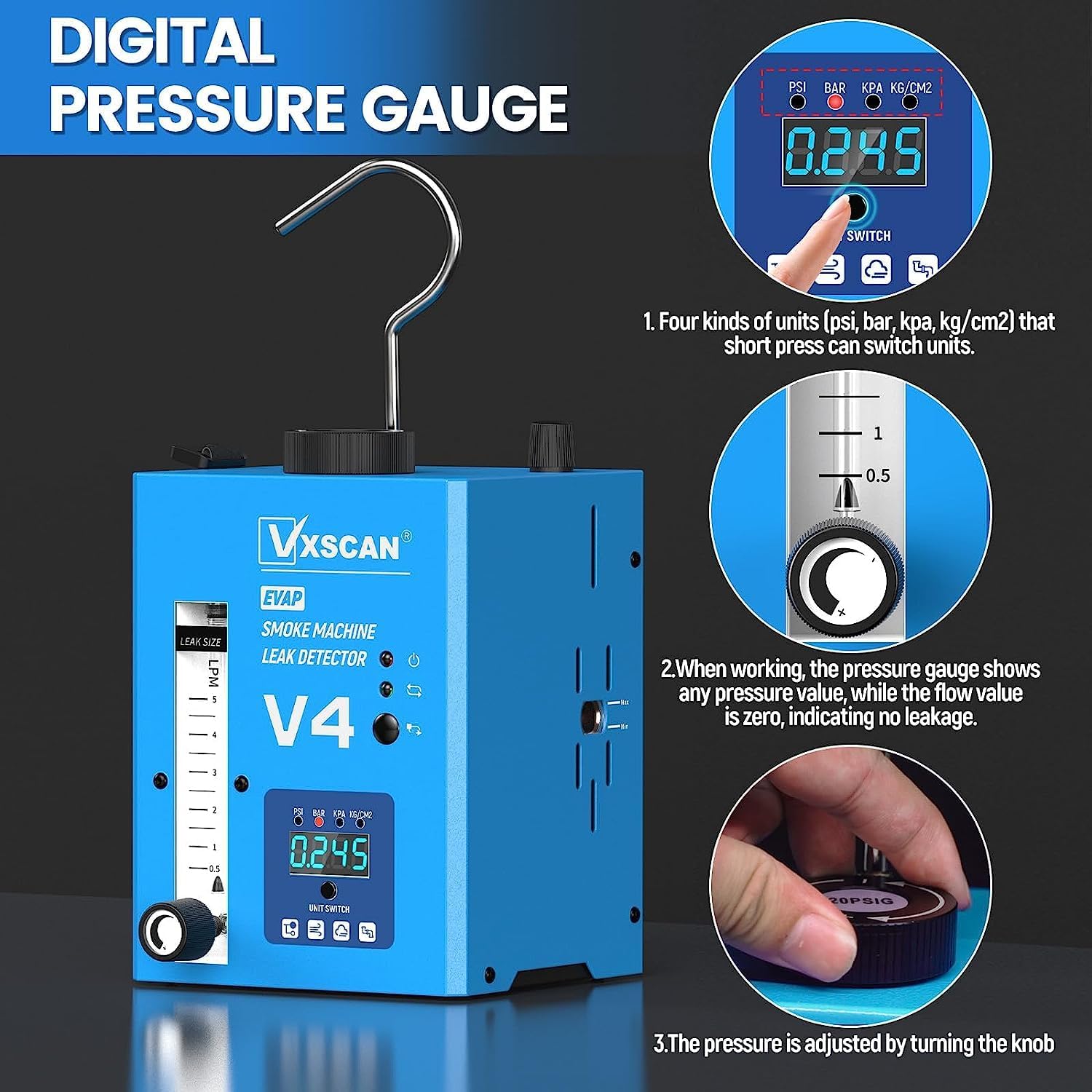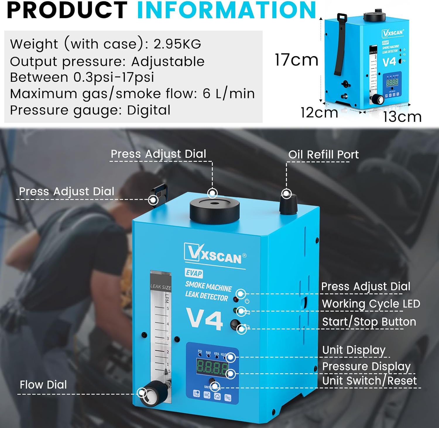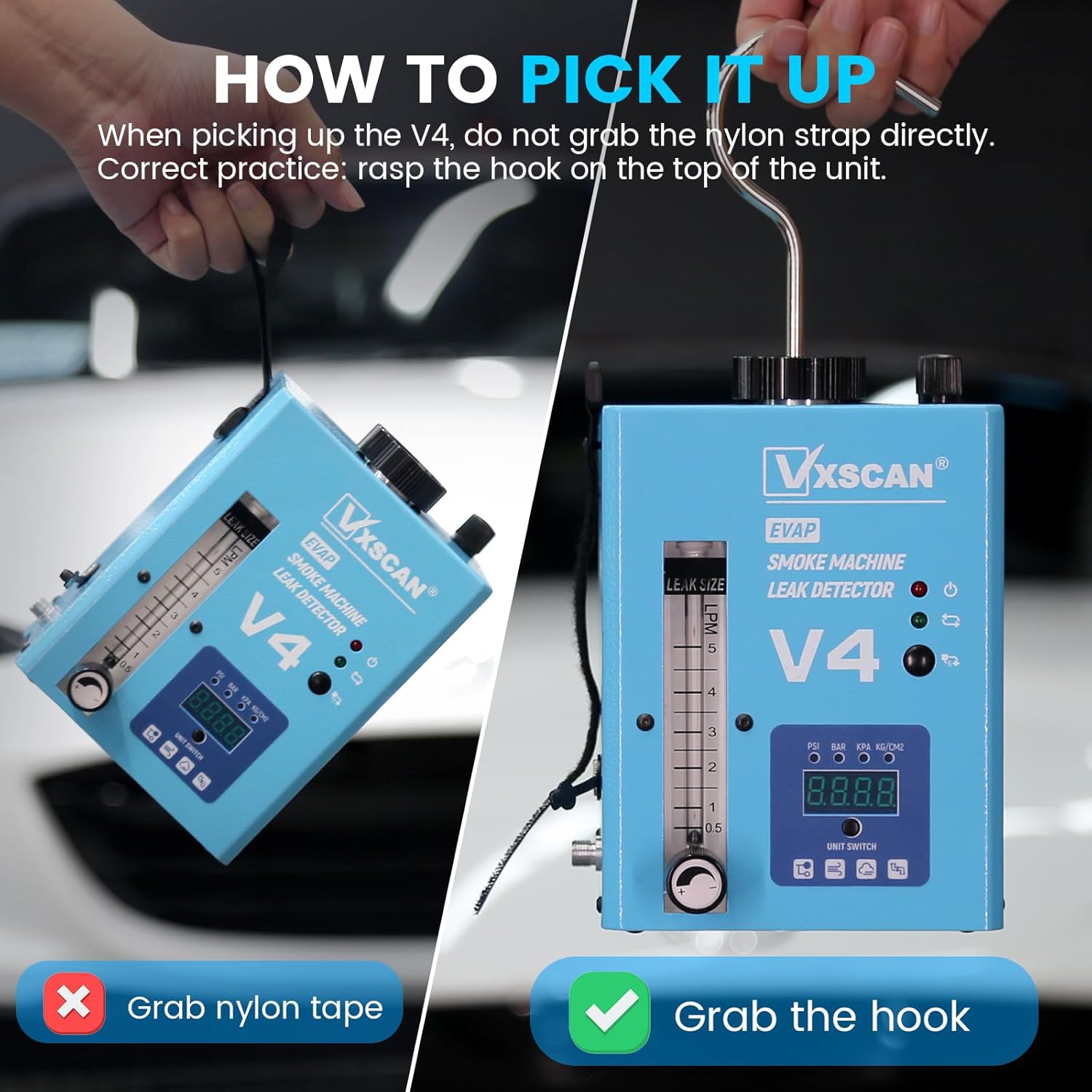 - 【VXSCAN V4 Nebelmaschine KFZ】 Kann Kfz-Dichtungen, Drosselklappenwellen, Motorblöcke, Turbolader-Testsysteme, Ansaugsysteme, Auspuffsysteme, Kraftstofftanksysteme, EVAP-Systeme, EGR-Systeme, Kühlsysteme und alle Arten von Rohrlecks überprüfen.