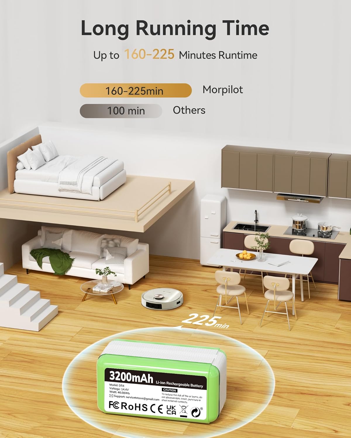 - 【Höhere Kapazität & Längere Laufzeit】:Der neu aufgerüstete 3200mAh Hochleistungsakku bietet bis zu 20% mehr Laufzeit im Vergleich zum Originalakku. Für eine optimale Erstnutzung laden Sie den Akku bitte vor dem ersten Gebrauch über Nacht