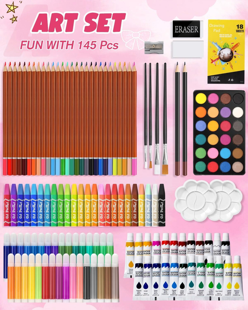 - 🎨 Bestes Geschenk - Aussendesign von Boxen mit Cartoon-Elementen. Es wird von Kindern völlig geliebt.Mit einer Vielzahl von farbenfrohen Werkzeugen, geeignet für Schulen, Kindergärten, Heimschulbedarf usw, es kann alle Ihre Zeichenbedürfnisse