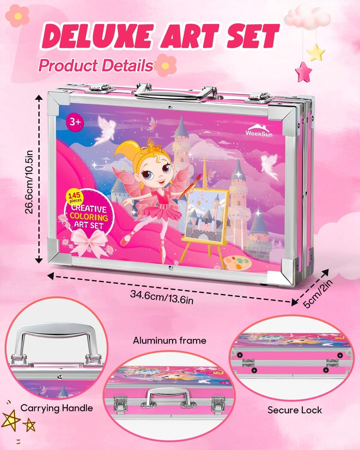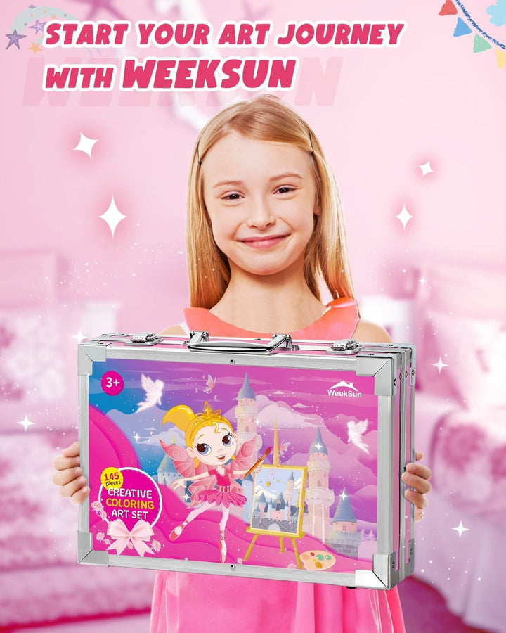 - 🎨 145 Stück Malkoffer- WEEKSUN 145-teiliges malkoffer deckt fast alles ab, was die zeichenbedürfnisse von kindern erfüllt:33 * Marker, 28 * Buntstifte, 24 * Ölpastelle, 24 * Acrylfarben, 24 * feste Aquarellfarben Kuchen und andere kleine