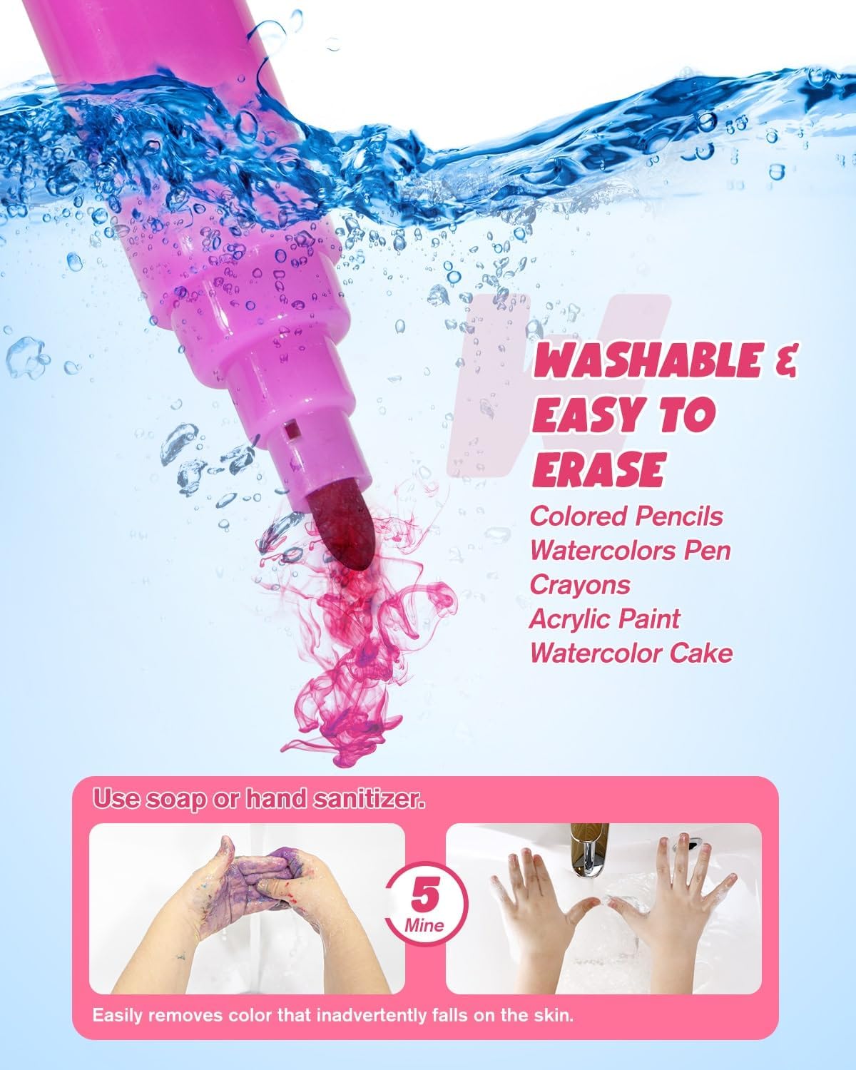 - 🎨 Einfach Zu Säubern - Machen Sie sich keine Sorgen, dass Kinder beim Malen Farbe auf ihre Hände kleben. Alle Arten von Bleistiften, Buntstiften und Aquarellstiften im Malset wurden zu leicht zu waschenden Materialien aufgerüstet. Einfach mit