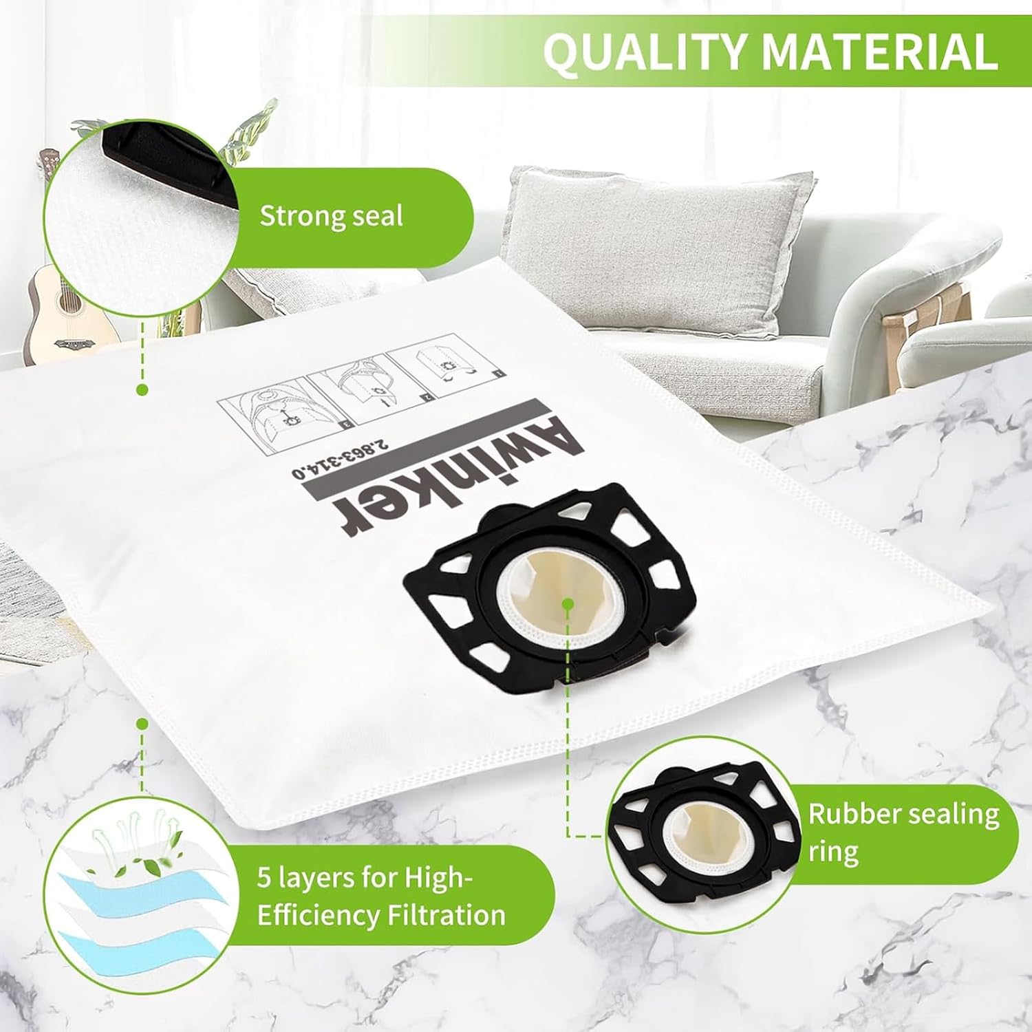 - Kompatibel zu mehreren Modellen: KFI 357 Staubsaugerbeutel für Kärcher WD2 WD3 KWD1 KWD2 KWD3 WD3.200 - WD3.800 M/SE4001/SE4002 2.863-314.0 Vliesfilterbeutel.